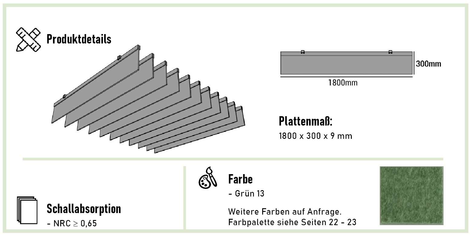 Produktinformationen "Akustik-Deckenabhängung Lineare Planken, Grün"