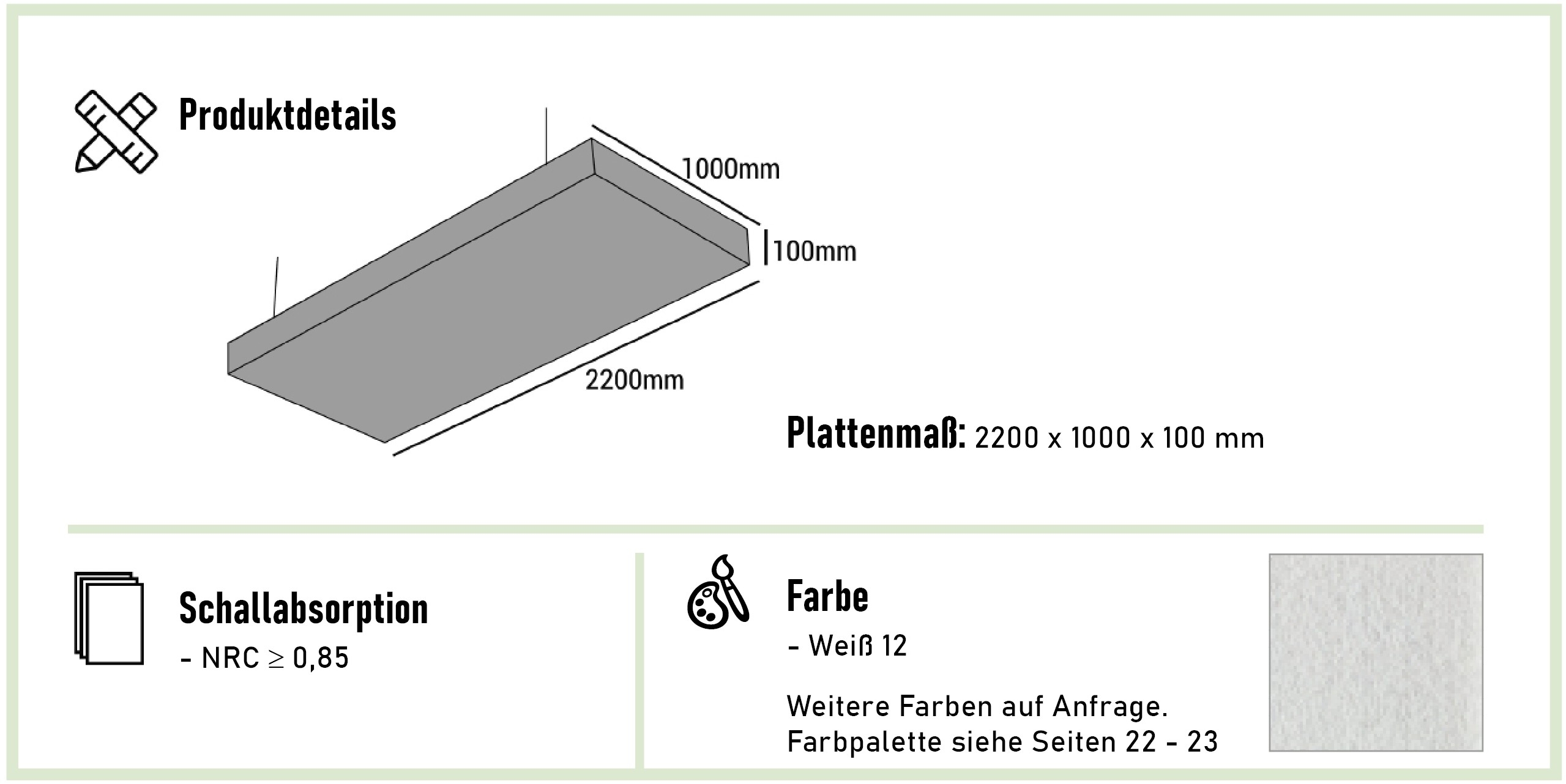 NRC ≥ 0,85 (Noise Reduction Coefficient / Schallabsorptionsgrad)