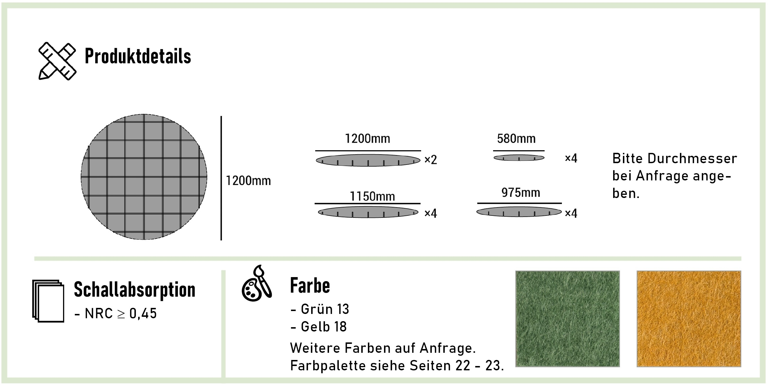 NRC ≥ 0,25 (Noise Reduction Coefficient / Schallabsorptionsgrad)