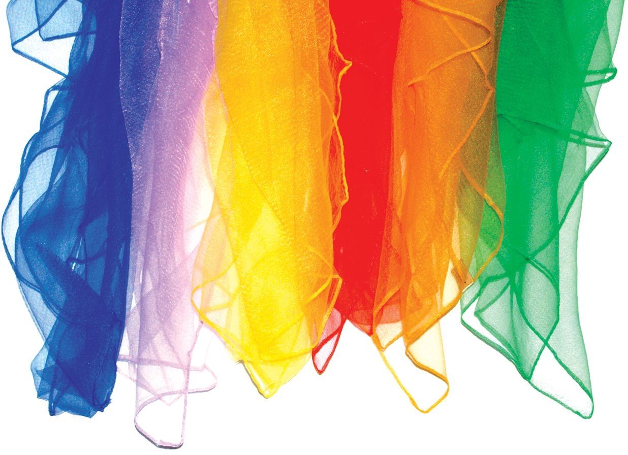 Farbenfrohe, federleichte Chiffontücher geeignet für Zauberei, Tanz, Rhythmik, Rollenspiele, zum Verkleiden und für Basteleien.