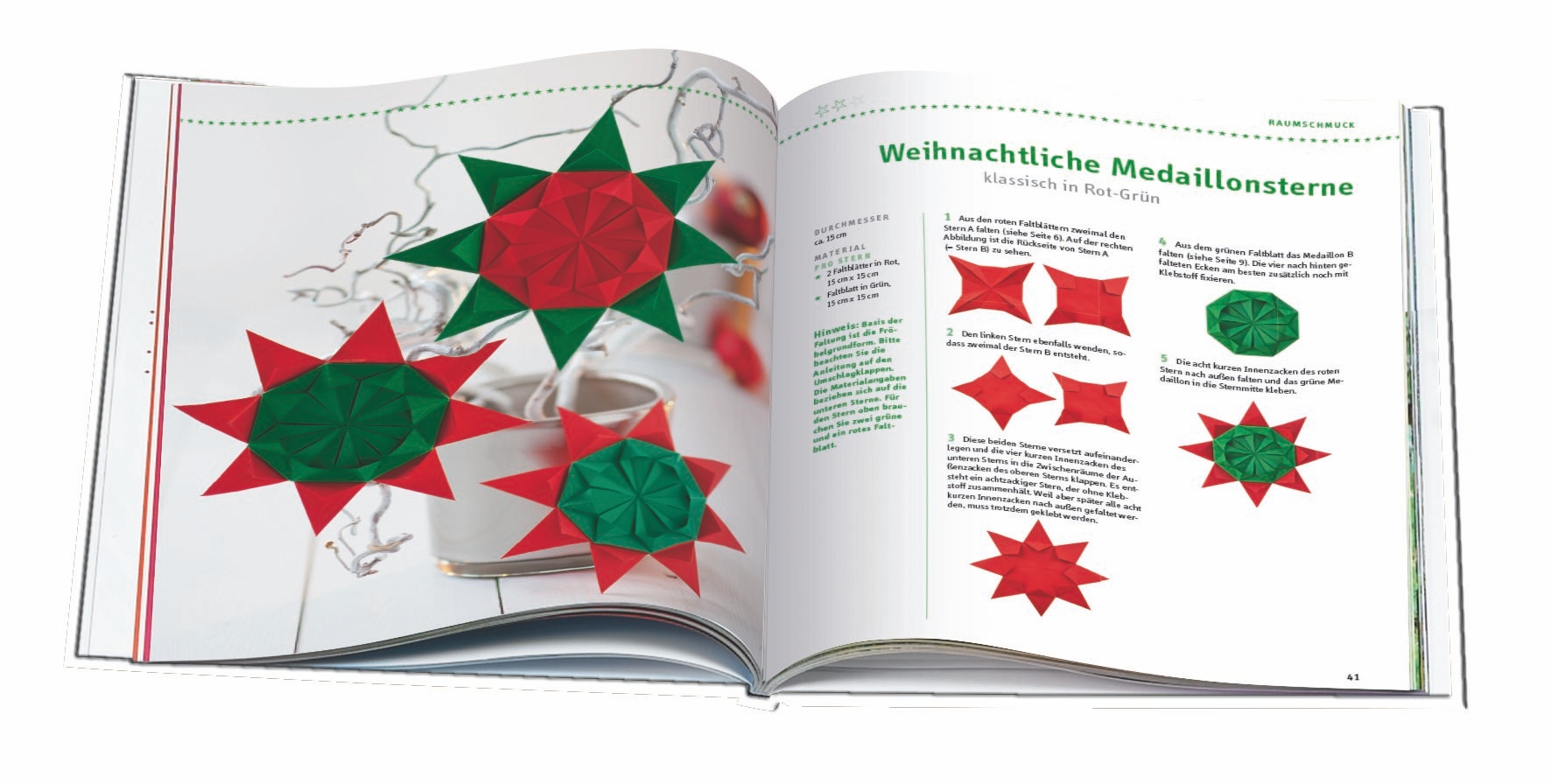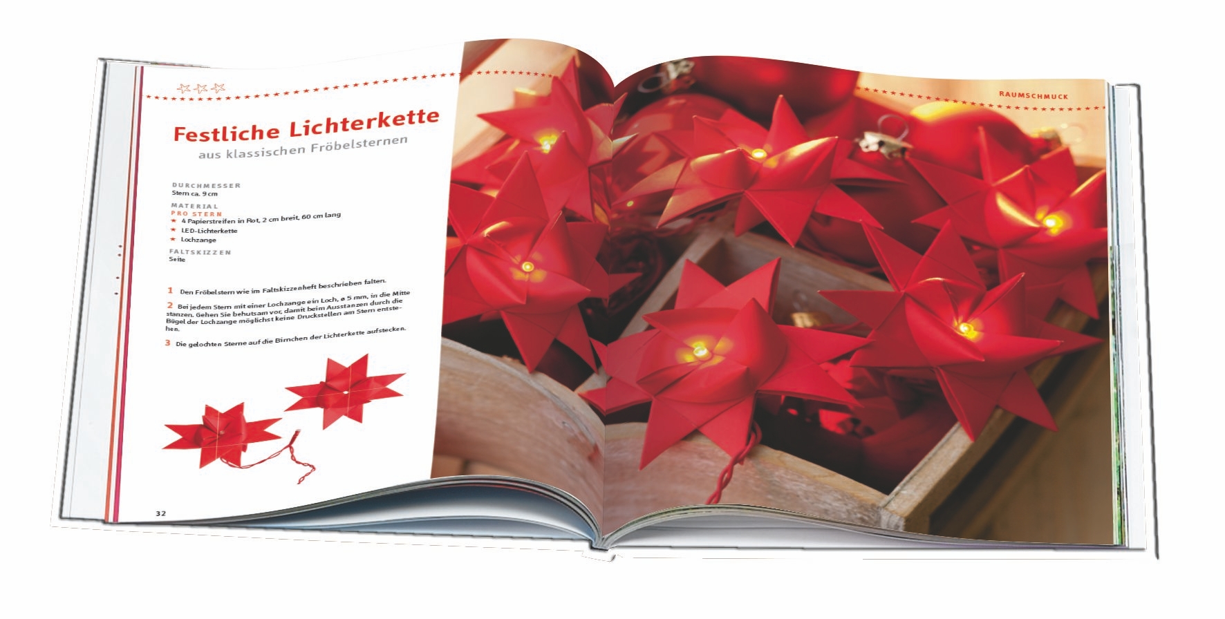 Was wären Weihnachten und die Adventszeit ohne den passenden Dekoschmuck? Fröbelsterne sind wundervolle Dekorationen für den Hauseingang, die Fenster oder den Christbaum. Es gibt eine Vielfalt an Papieren mit unterschiedlichen Mustern, Farben und Oberflächenstrukturen: Vom Klassiker über Fröbelsternkugeln bis hin zu modernen Variationen ist alles enthalten - mit Vorlagen und Falttechniken. Inklusive über 50 Anleitungen für Raumschmuck, Tischdeko und Geschenkideen (darunter Sternenkranz, Fröbelsterne, Transparentsterne, Blütensterne, Lichter, Christbaumkugeln, Medaillonsterne, Fensterdekoration, Mobile, Sternenkugel, Türschmuck, etc.). 3 Schwierigkeitsgrade.