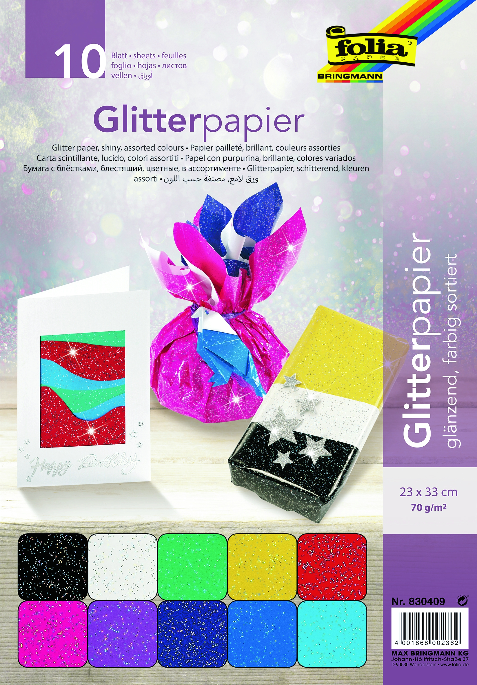 Glitterpapier 23 x 33 cm, farbig sortiert