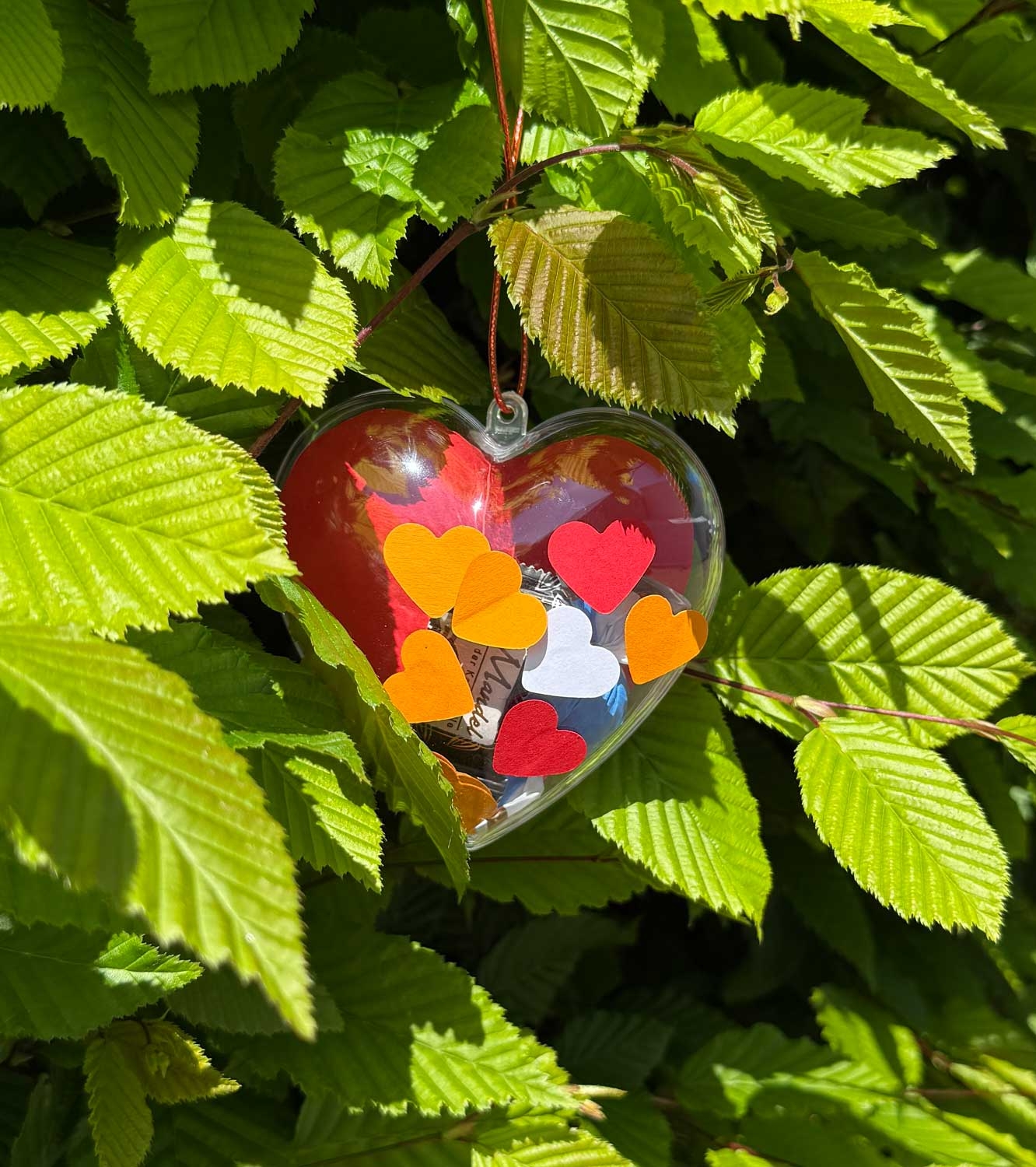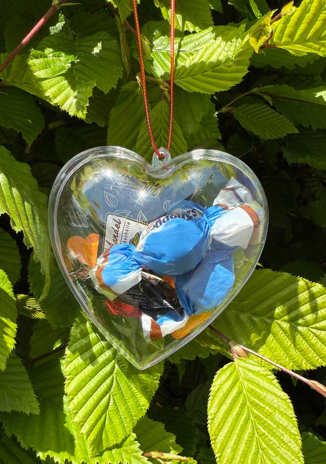 Zweiteilig und mit praktischer Öse zum Aufhängen, lässt es sich einfach befüllen - mit kleinen Botschaften, Bildern oder Süßigkeiten.