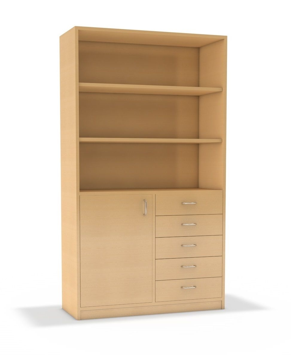 unten Tür links oder rechts, 2 Einlegeböden, rechts 5 Schubkästen
