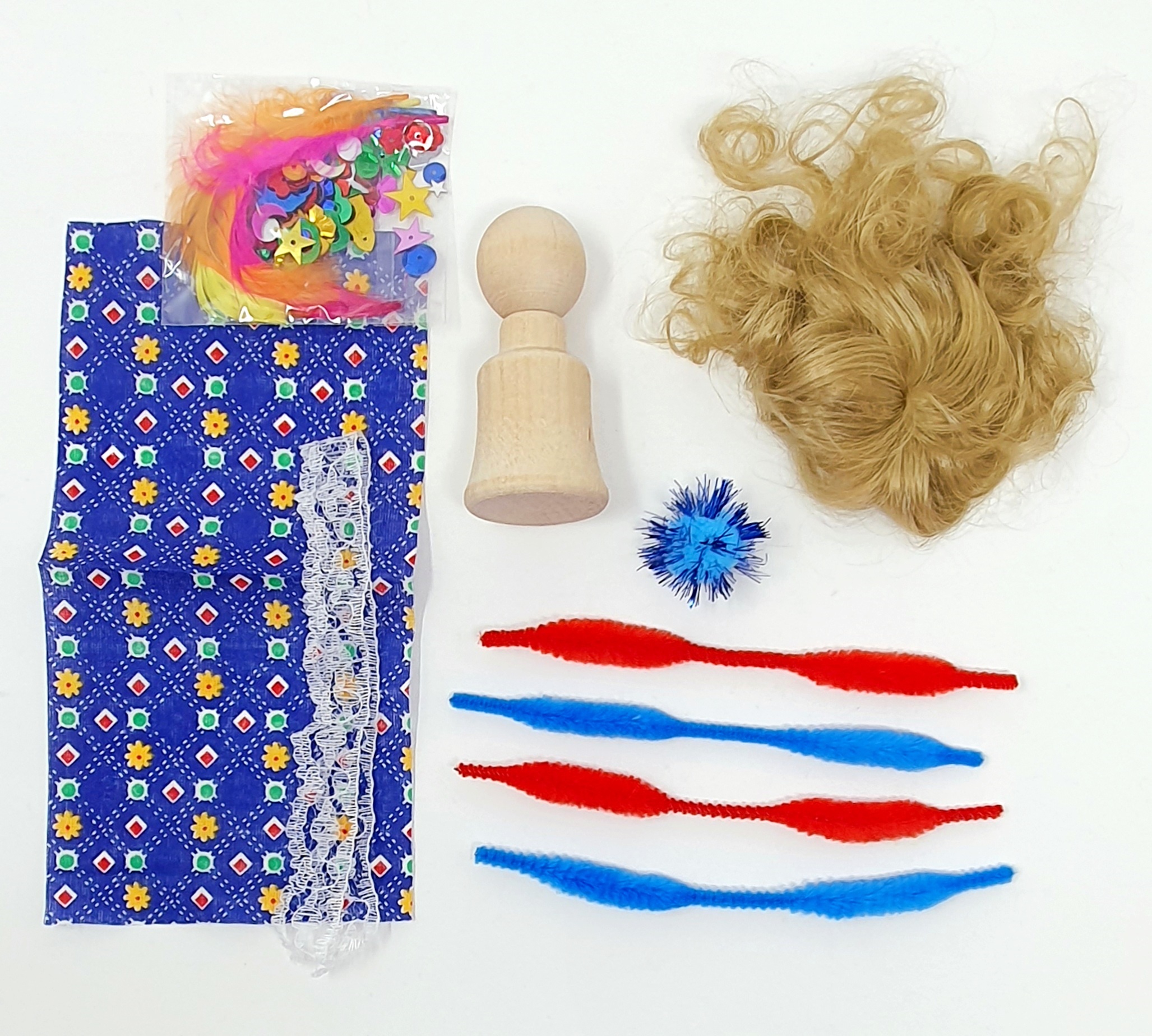 Mit diesem Bastelset kann man sich sein eigenes tolles Holzpüppchen basteln.