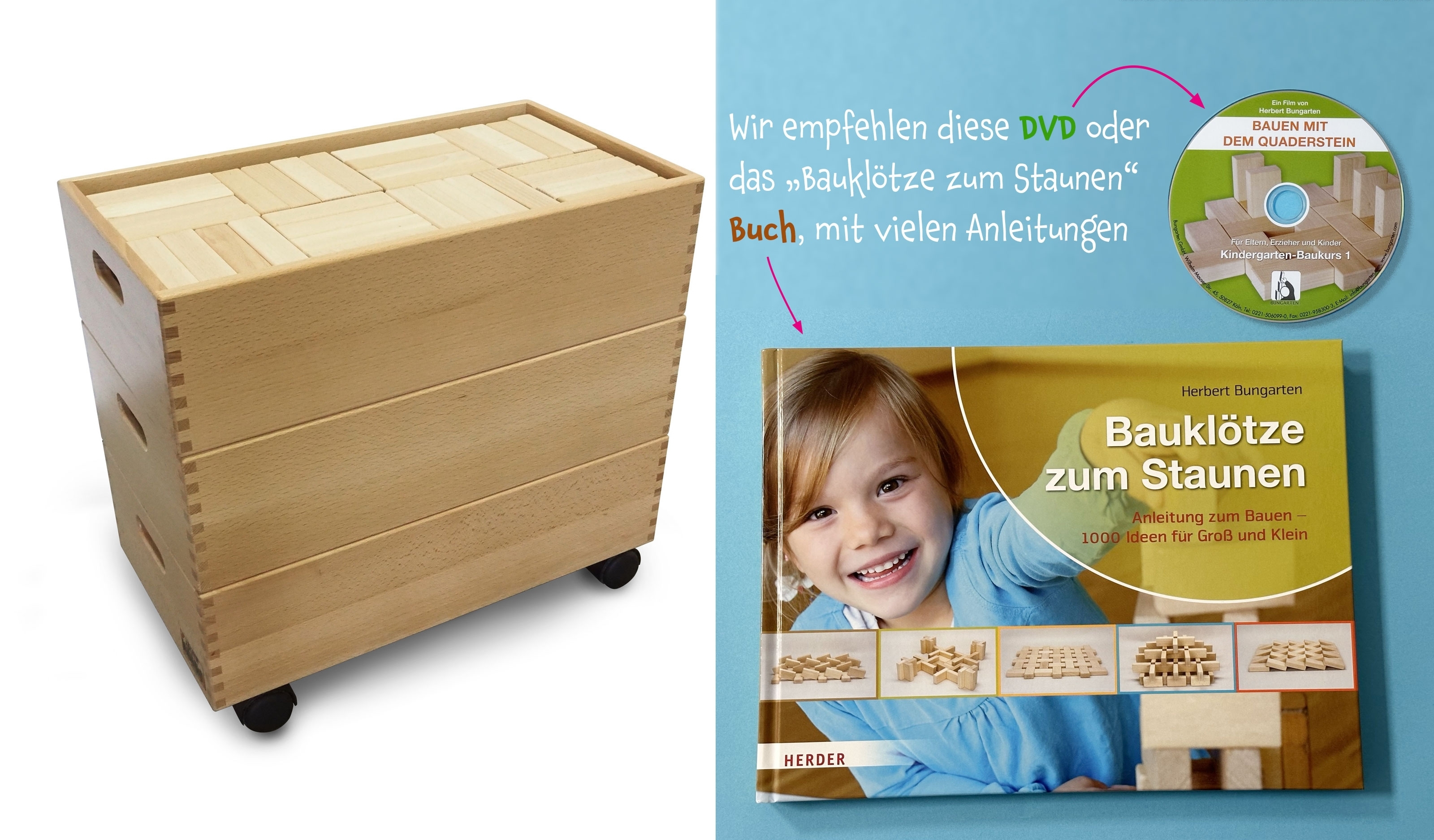 Bausteine und Kästen aus Buche-Massiv. Höchste Qualität, gerade Flächen, Maßgenauigkeit, jeder Stein wird per Hand geprüft.