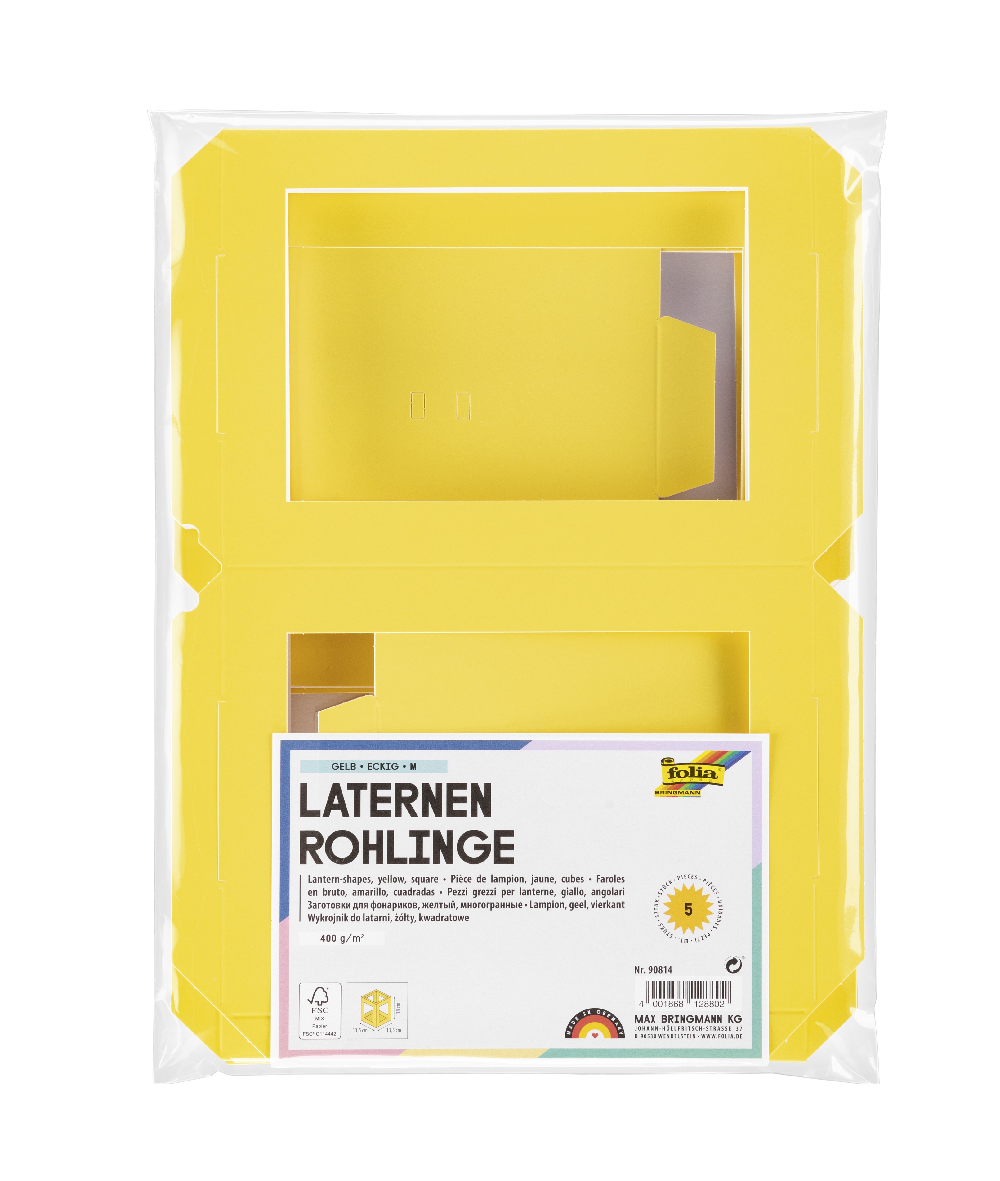 Laternen-Rohlinge eckig, 5 Stück, gelb