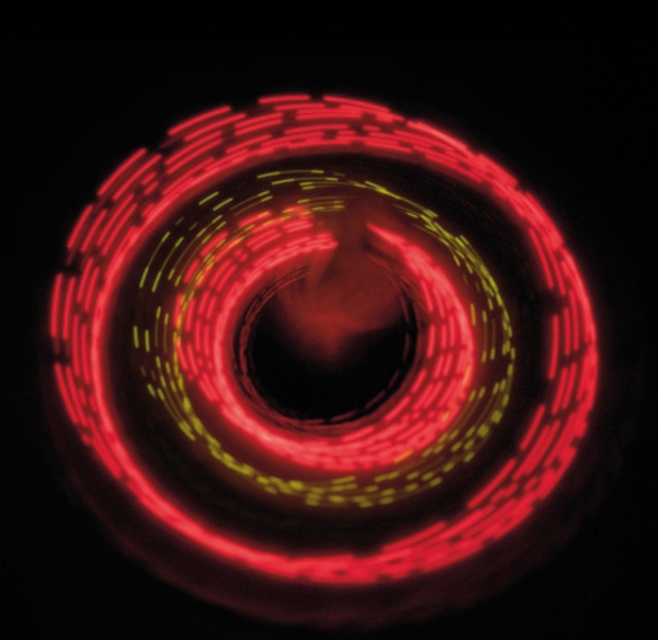 Durch geschicktes Drehen fangen die Kreisel an zu leuchten.