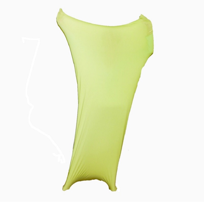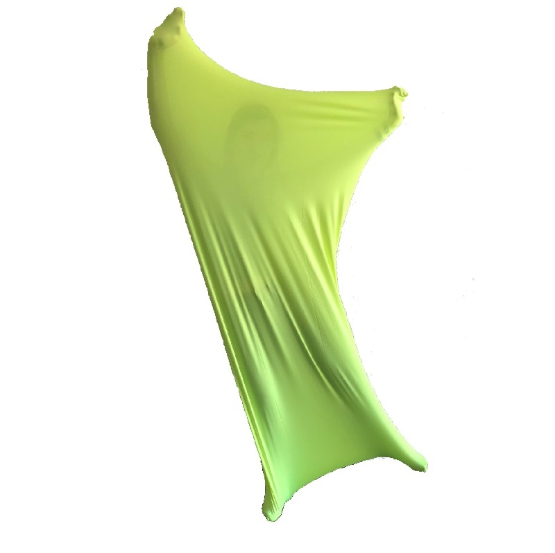 Das extrem belastbare Polyestergewebe ist in alle Richtungen dehnbar. Bei geschlossenem Klettverschluss ist der Darsteller von außen nicht zu sehen, kann aber von innen das Publikum genau beobachten. So kann man spielerisch den Raum neu erfahren.