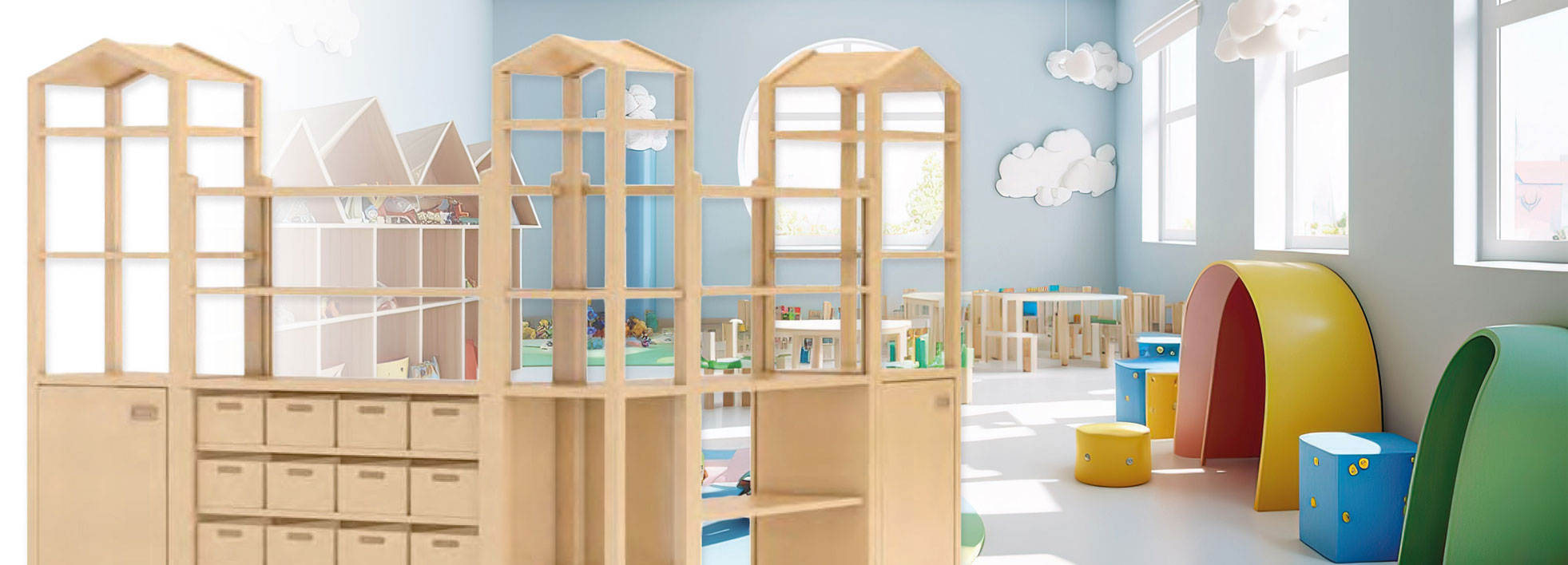 Als Ausstatter von Kindergärten sind wir stolz darauf, eine breite Palette an Möbeln, Raumteilern und Schränken anbieten zu können, die speziell für die Bedürfnisse von Kindern entwickelt wurden. Unsere Kindergartenmöbel sind robust, langlebig und entsprechen den höchsten Sicherheitsstandards, um eine sichere Umgebung für Kinder zu schaffen.