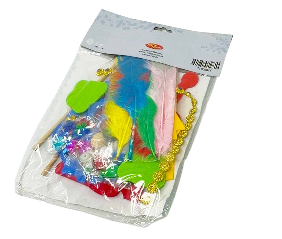 Die Bastelpackung enthält Elemente, die das selbstständige Arbeiten fördern und gleichzeitig pädagogische Ziele wie Feinmotorik, Farbgefühl und Kreativität unterstützen.