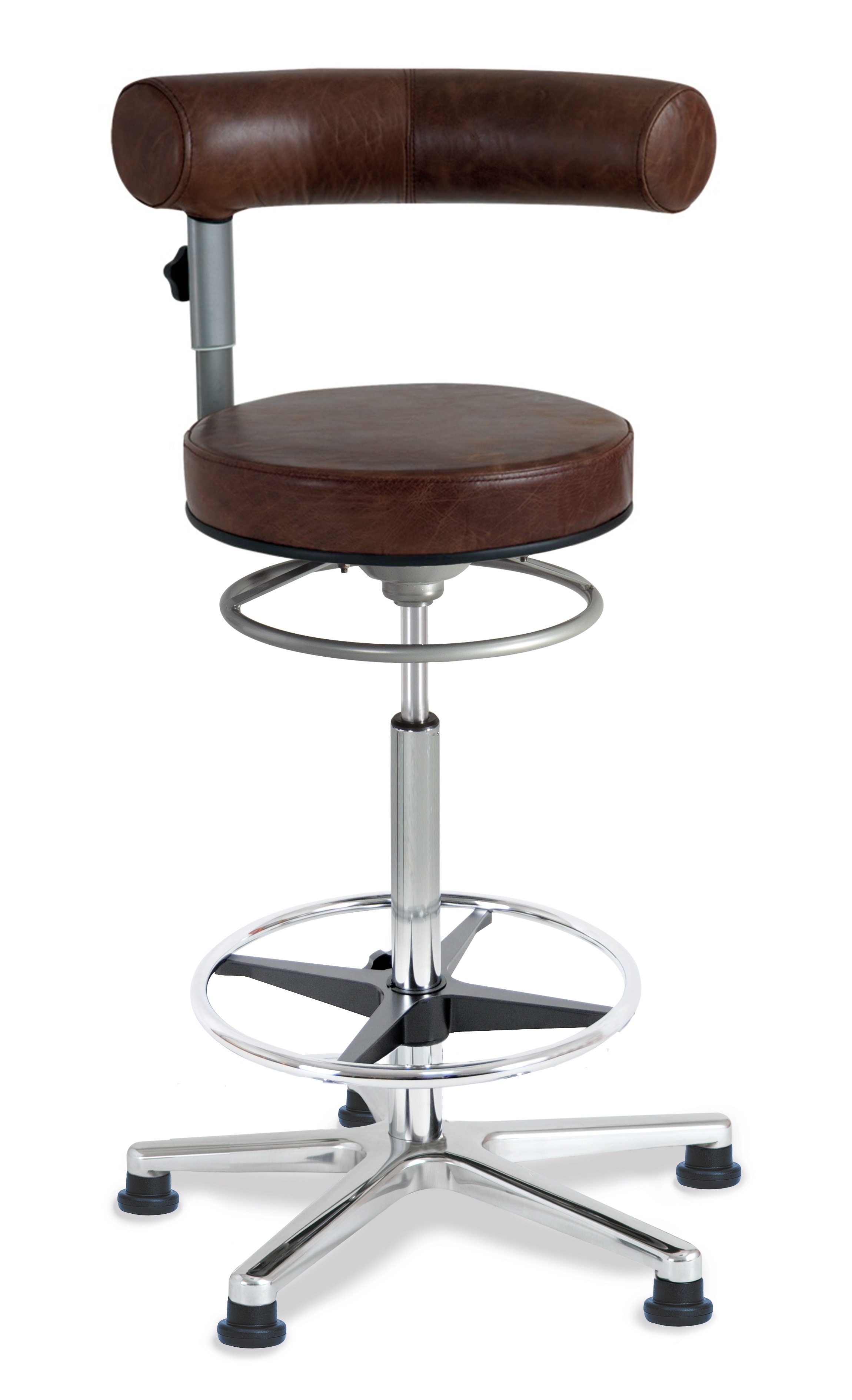 · die aus dem Sitzen heraus vollkommen schwenkbare gepolsterte Lehne (um 360º), lässt sich in jede nur denkbare Position drehen: seitlich oder zum Aufstützen der Arme vorn und natürlich nach hinten zur Stützung des Rückens