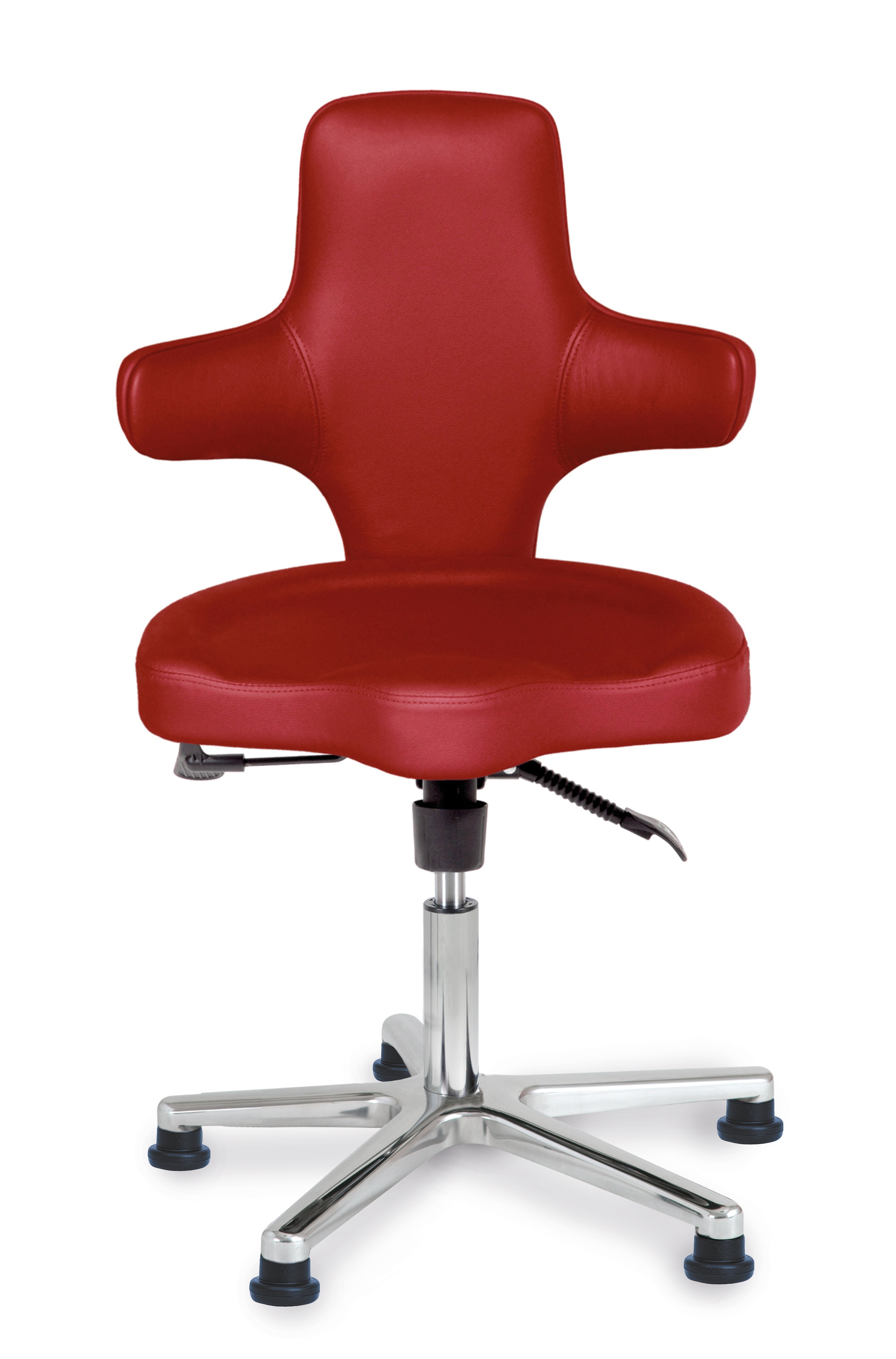 - Drehknopf reguliert die Neigung (schwer/leicht neigbar) der Rückenlehne