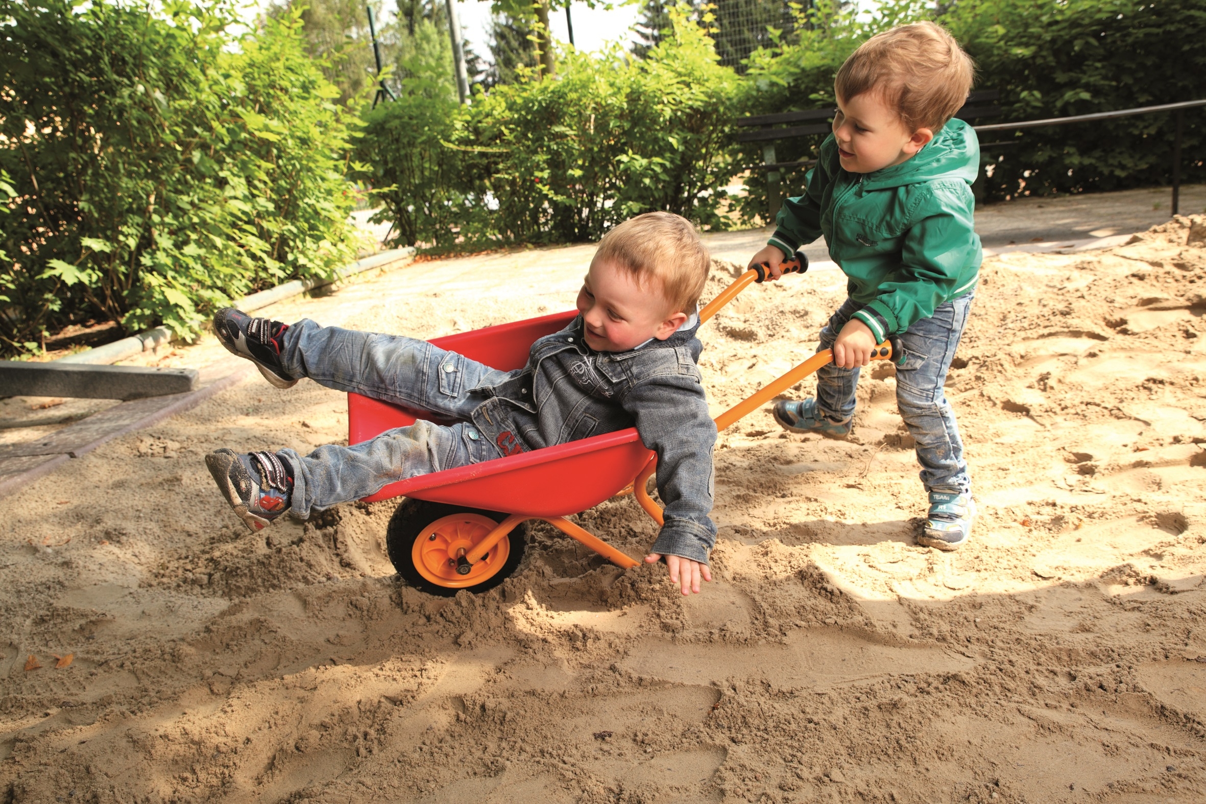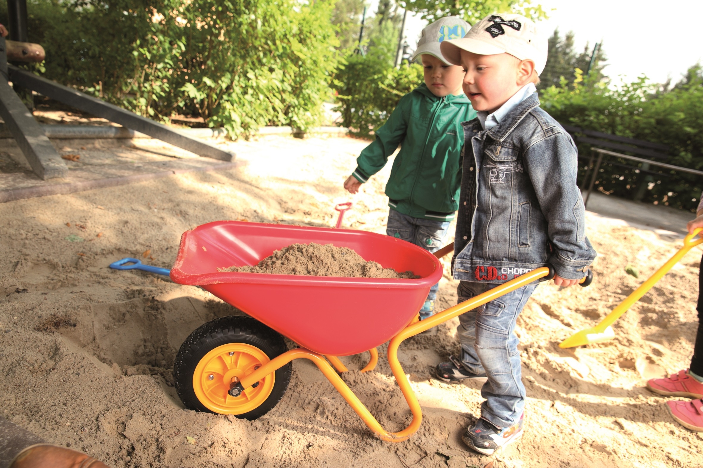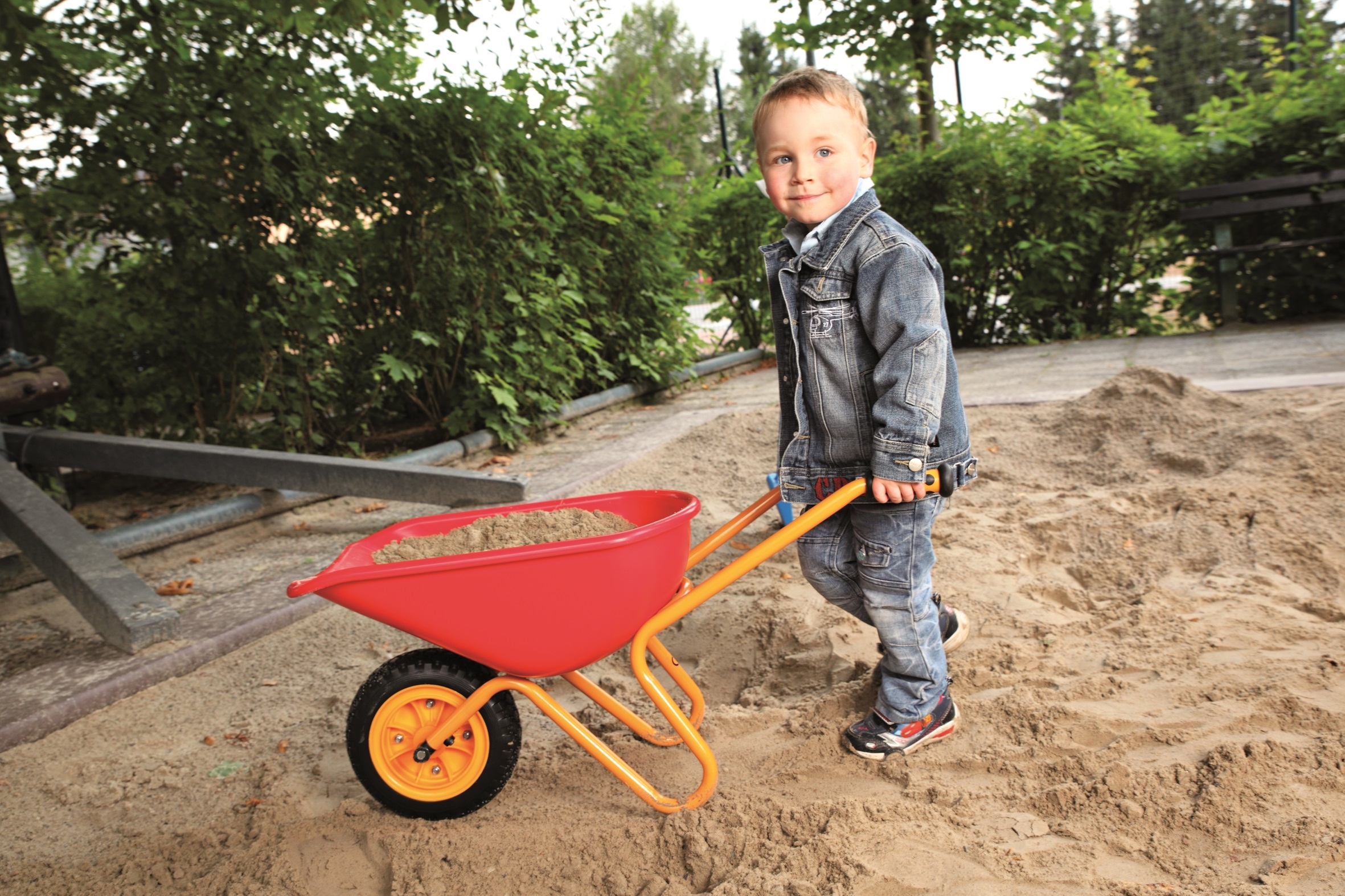 Die große und stabile Schubkarre ist aus keinem Sandkasten wegzudenken. Das hohe Fassungsvermögen macht es möglich, größere Mengen Sand zu beladen, zu transportieren und wieder zu entladen. Kleine Sandburgenbauer kommen so auf ihre Kosten.
