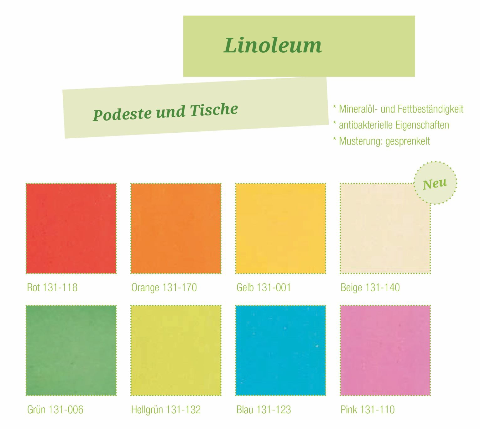 Bitte die Farbe des Linoleum auswählen. Dieser ist in 8 Farben lieferbar.