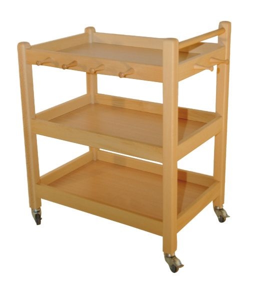 Produktinformationen "Taschenwagen mit Holzhaken und 3 Ablagen"