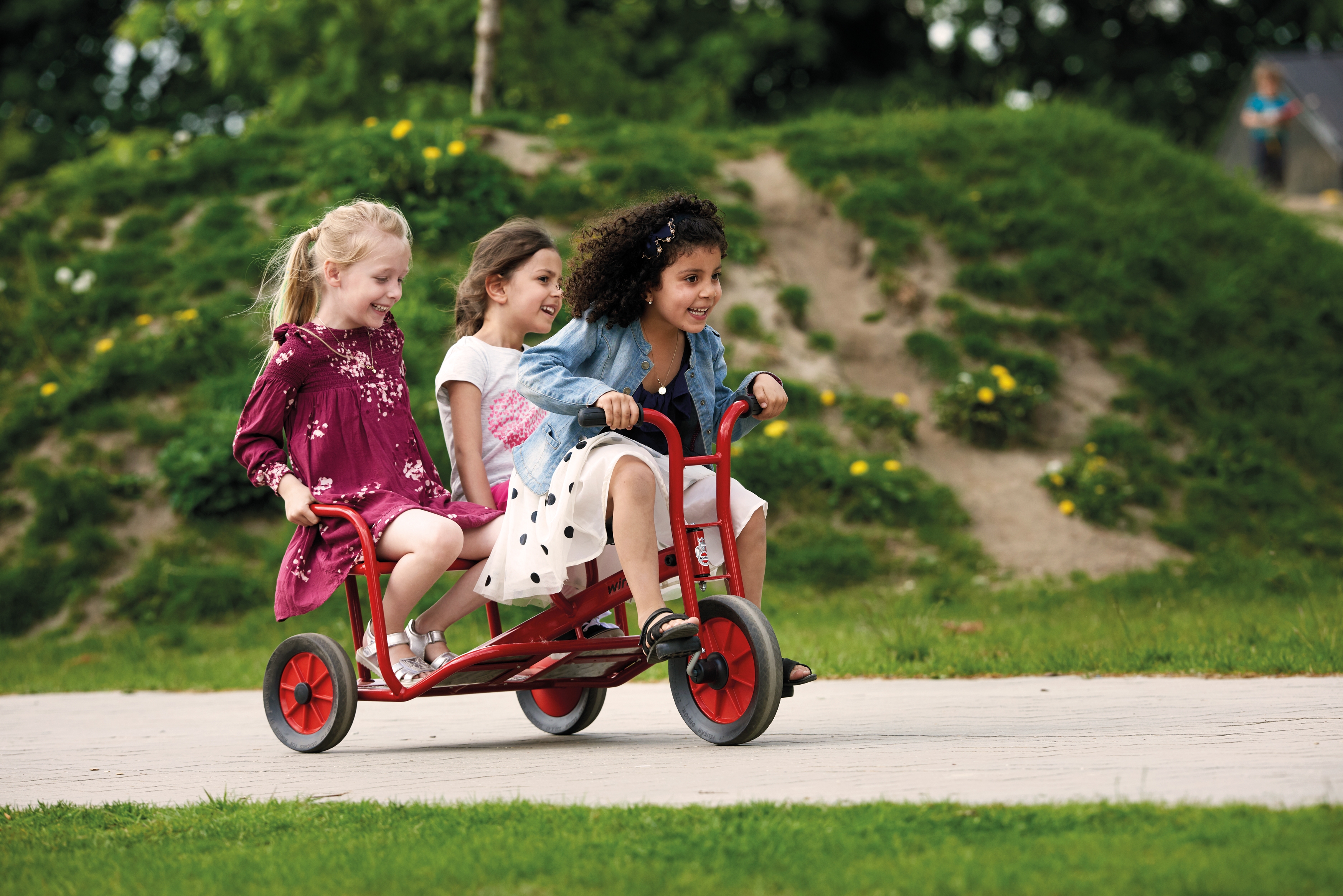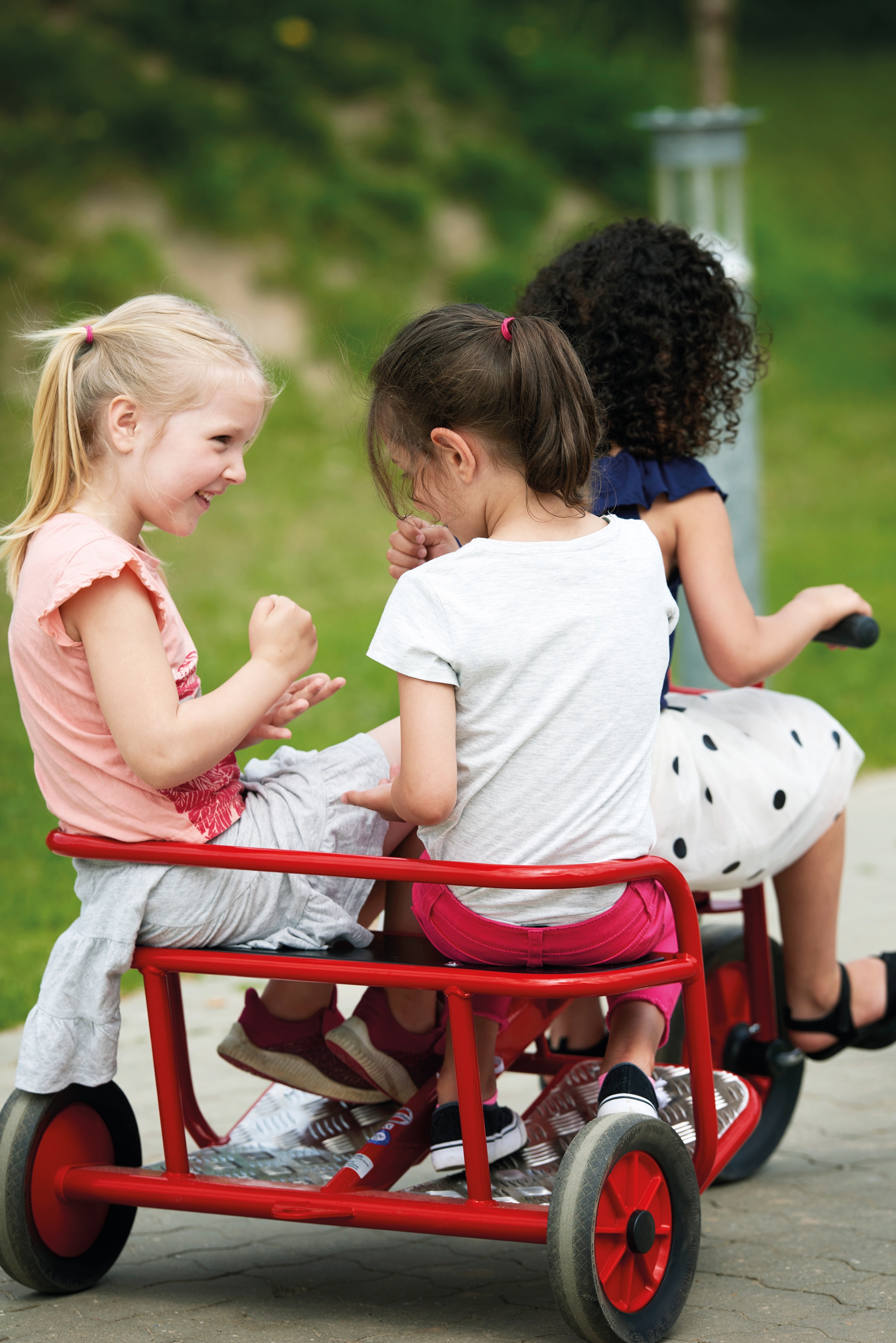 Auf der großen, hinteren Sitzbank kann auch ein Erwachsener sitzen und die vorderen Pedale betätigen, deshalb ist das Doppeltaxi ebenfalls sehr gut für den Einsatz im Therapie- oder Rehabereich geeignet.