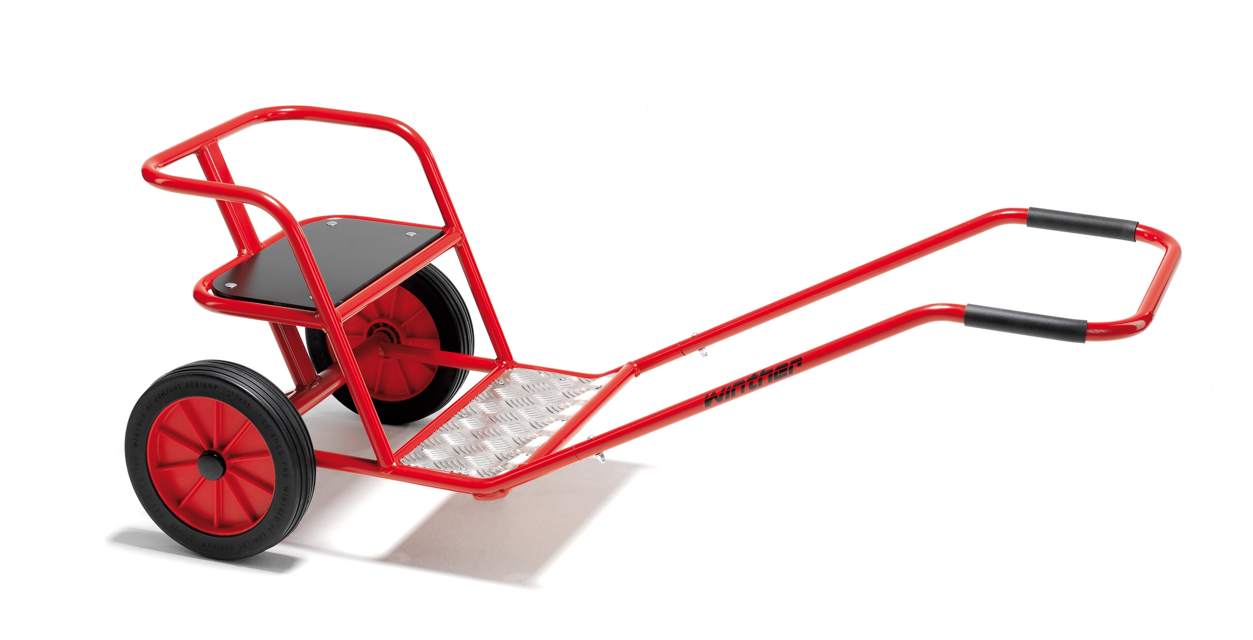 Ein Kind ist Passagier, während ein anderes Kind zieht - natürlich im Wechsel!