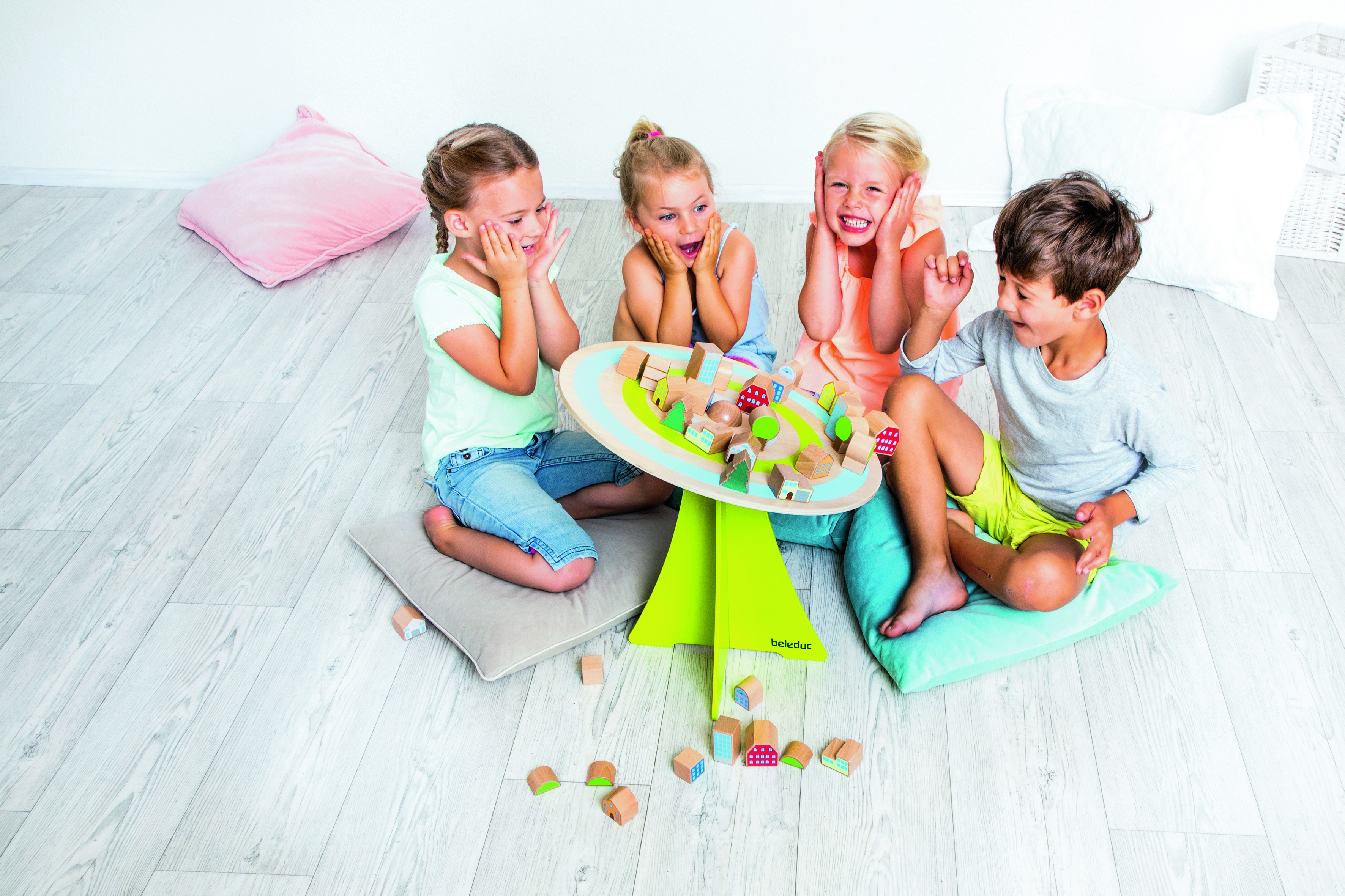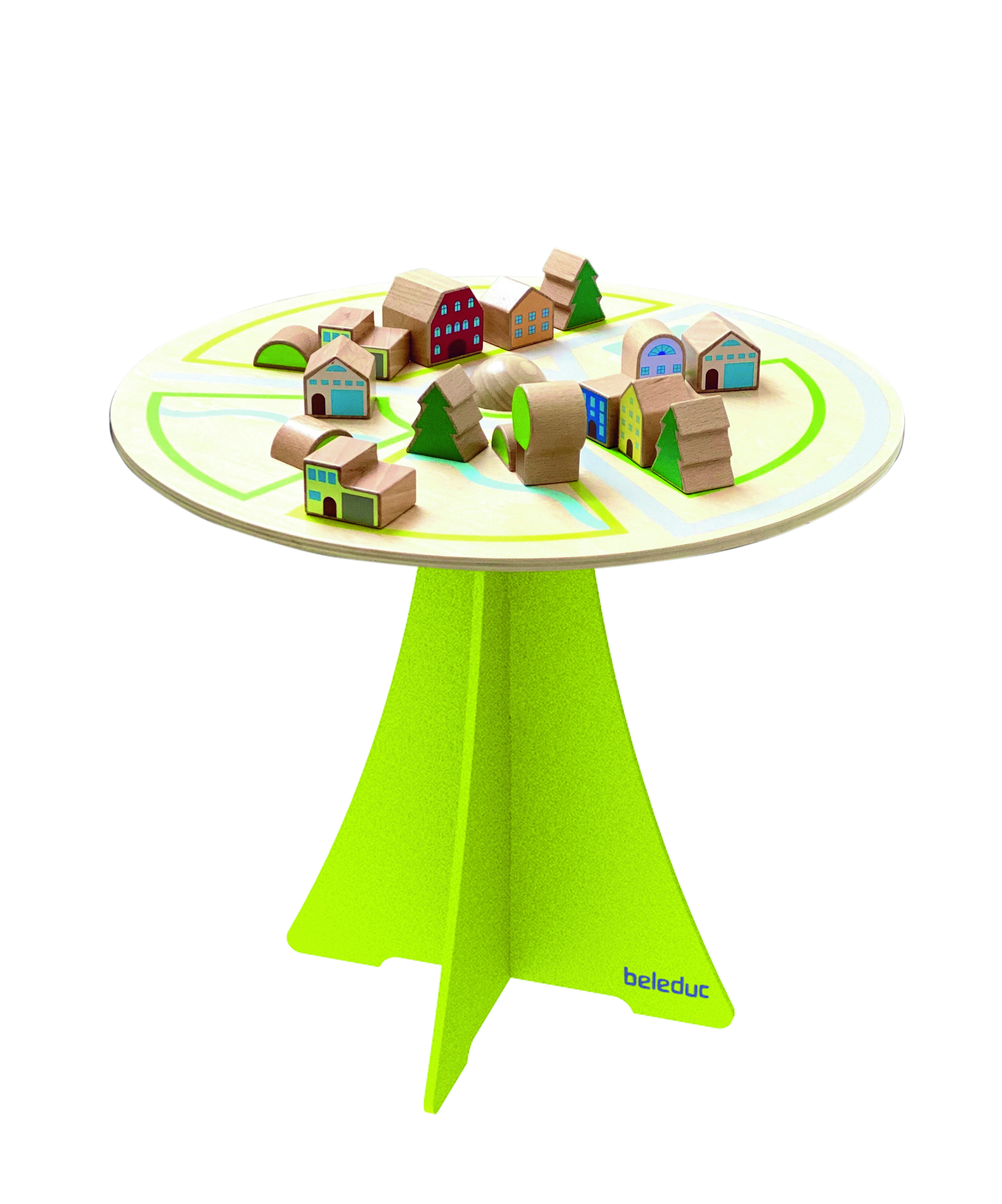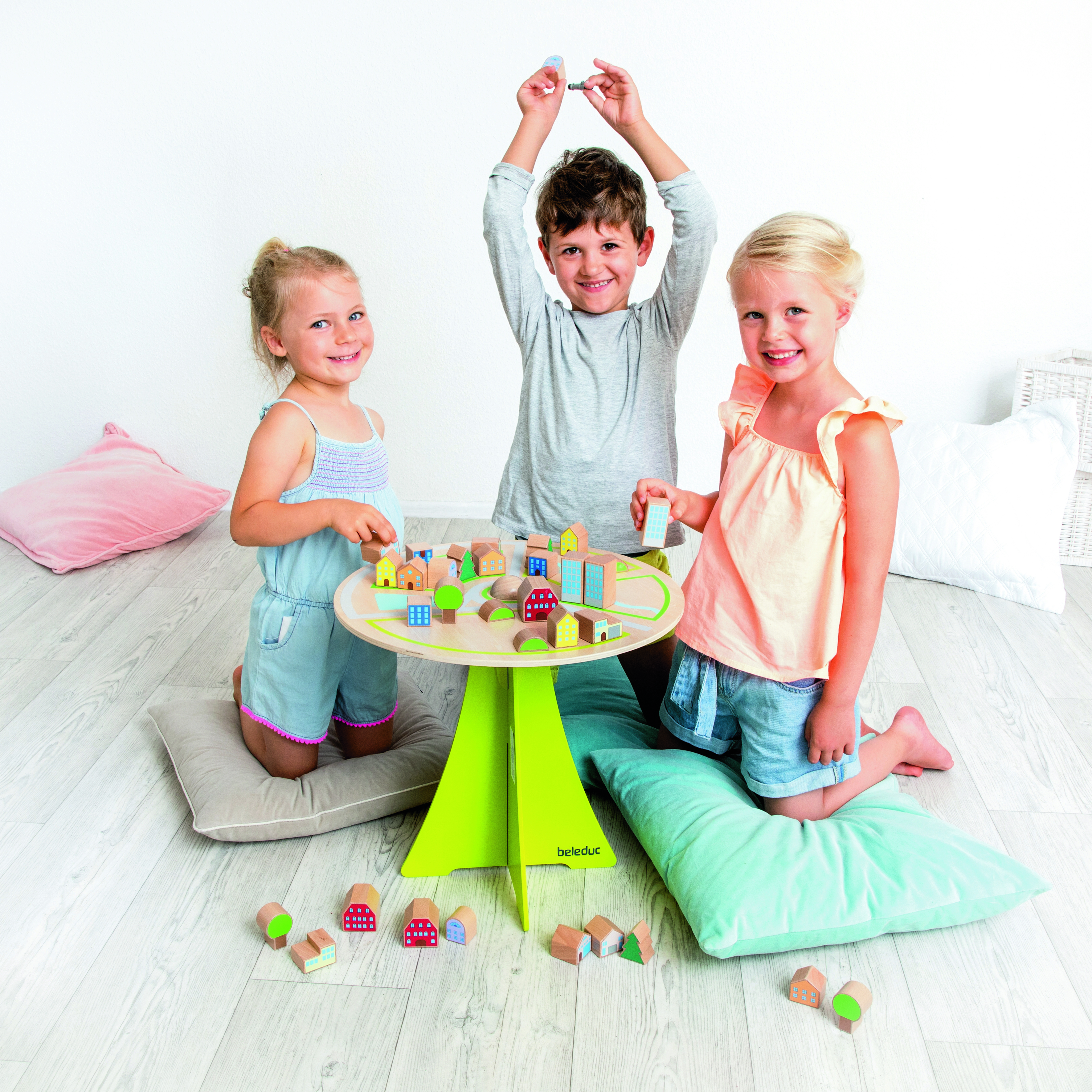 Förderschwerpunkte: Feinmotorik beim Bauen mit den Häusern und Bäumen in verschiedenen Größen und Gewichten, Abschätzung der Gewichtsverteilung; Balancieren beim Platzieren der Spielfigurenauf dem Spielbrett; Erkennung und Benennung der verschiedenen Farben und Formen; Kooperative und kreative Zusammenarbeit beim Stadtbau im Gruppenspiel, Sozialverhalten und Gruppenkommunikation werden gestärkt