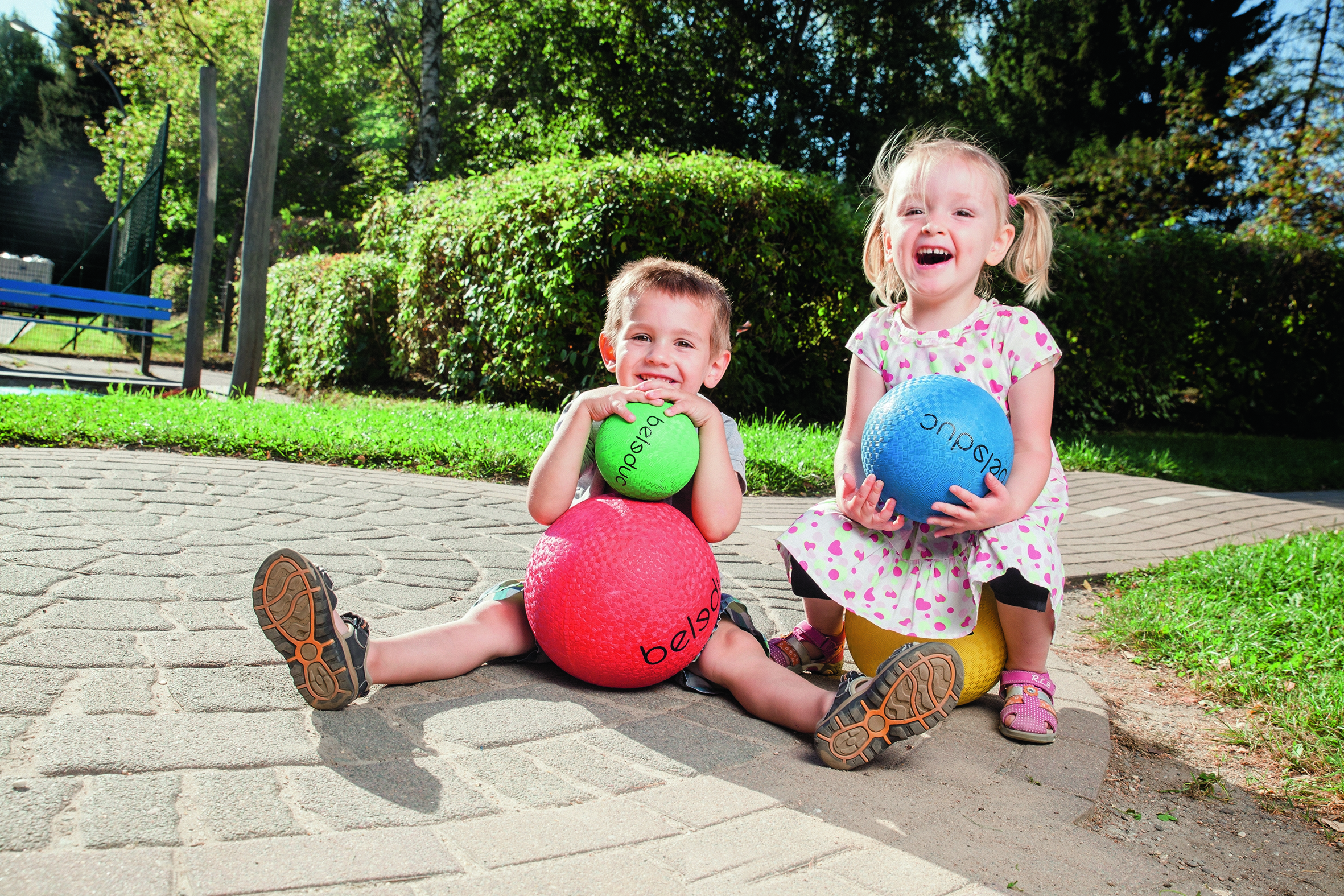 Durch ihre griffige Oberfläche lassen sich diese Bälle besonders gut von Kinderhänden greifen.
