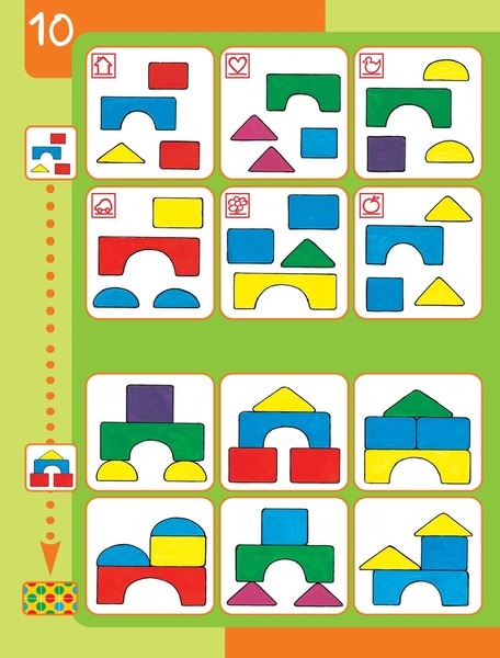 Spielerisches Zuordnen und Betrachten von Bildern und Formen: Gleiche Abbildungen, Schatten und Umrisse. Die Übungen stärken Konzentrations-, Denk- und Kombinationsfähigkeit