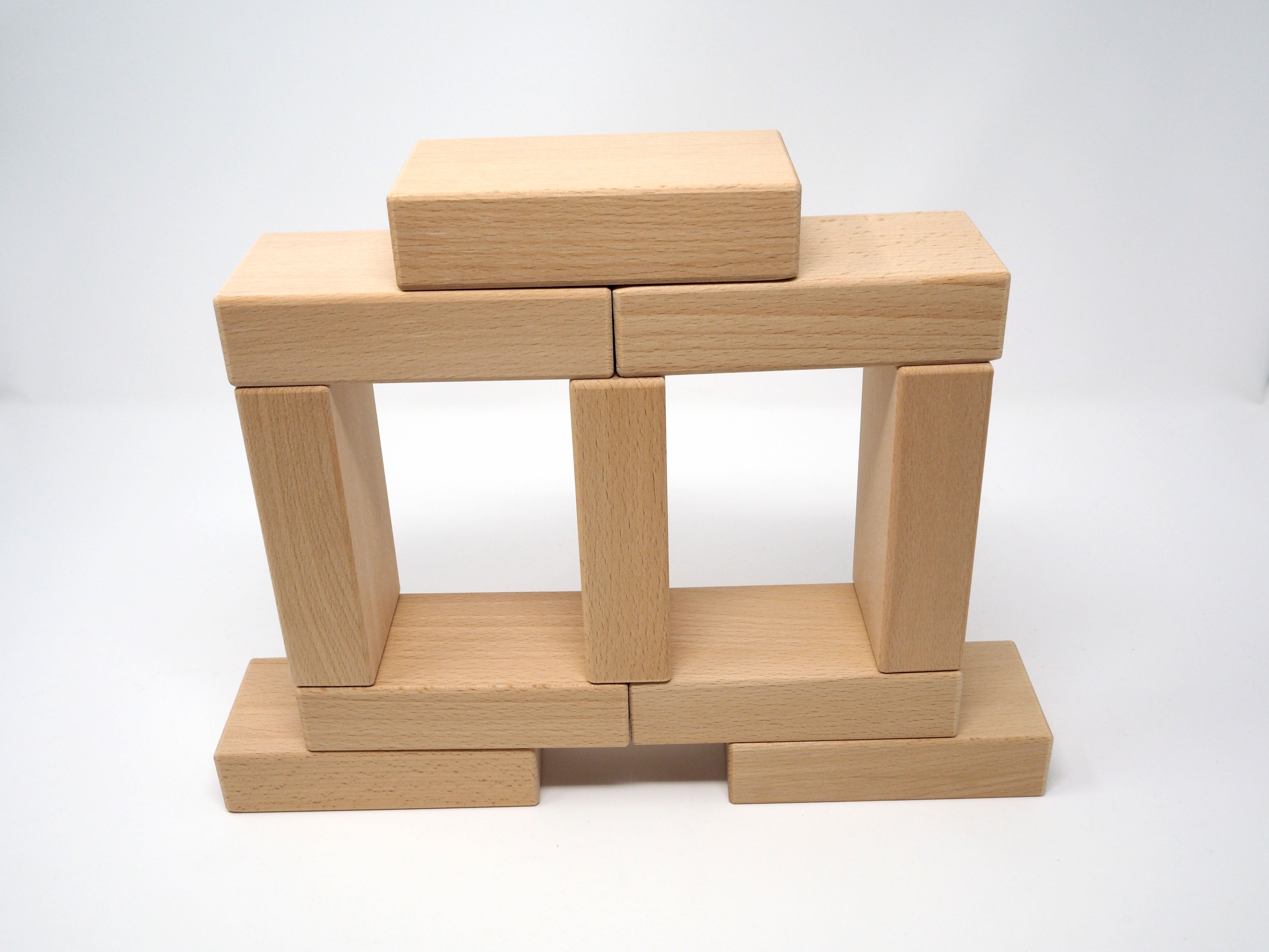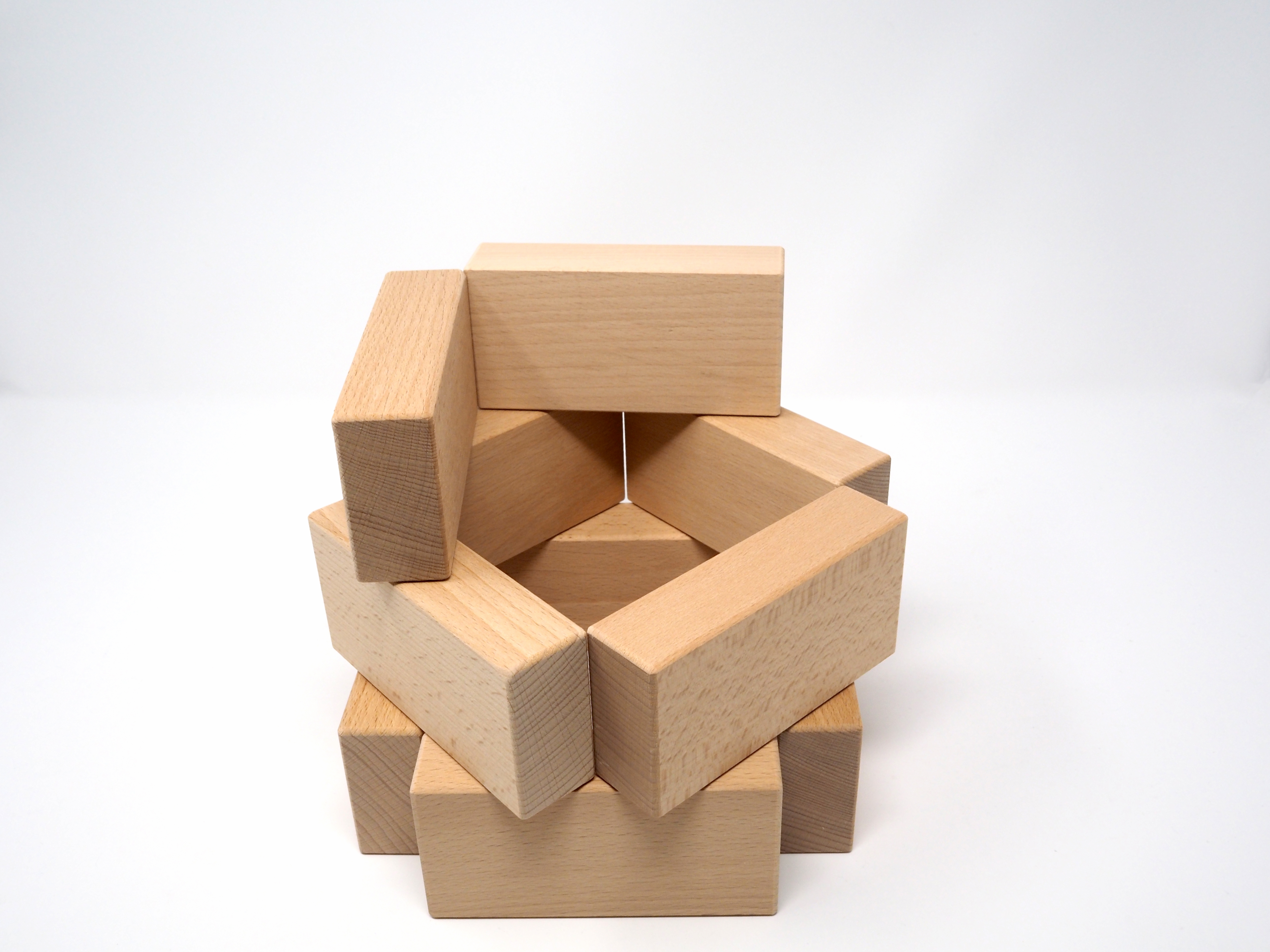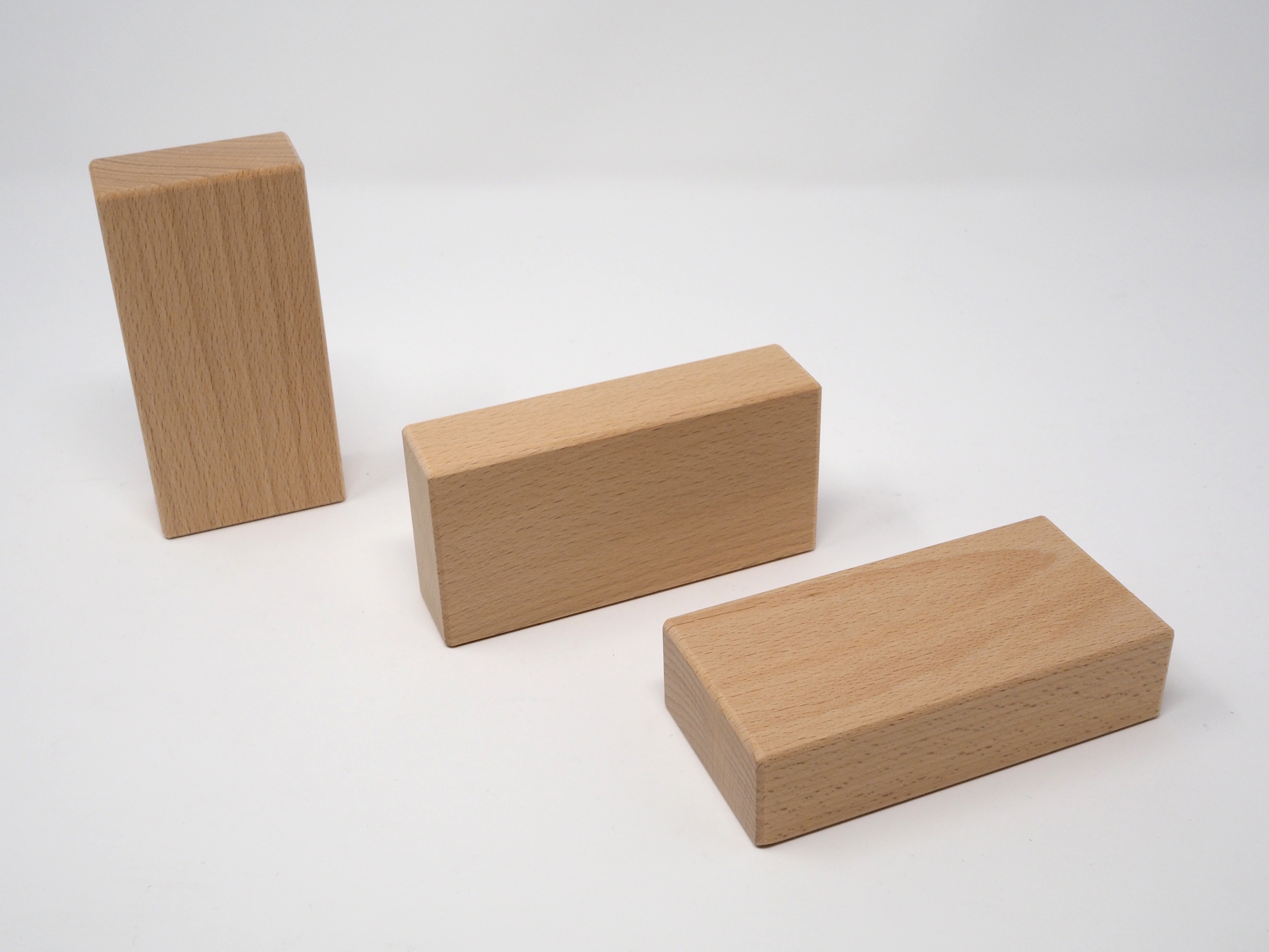 Bauklötze aus Buche-Massiv. Höchste Qualität, gerade Flächen, Maßgenauigkeit, jeder Stein wird per Hand geprüft.