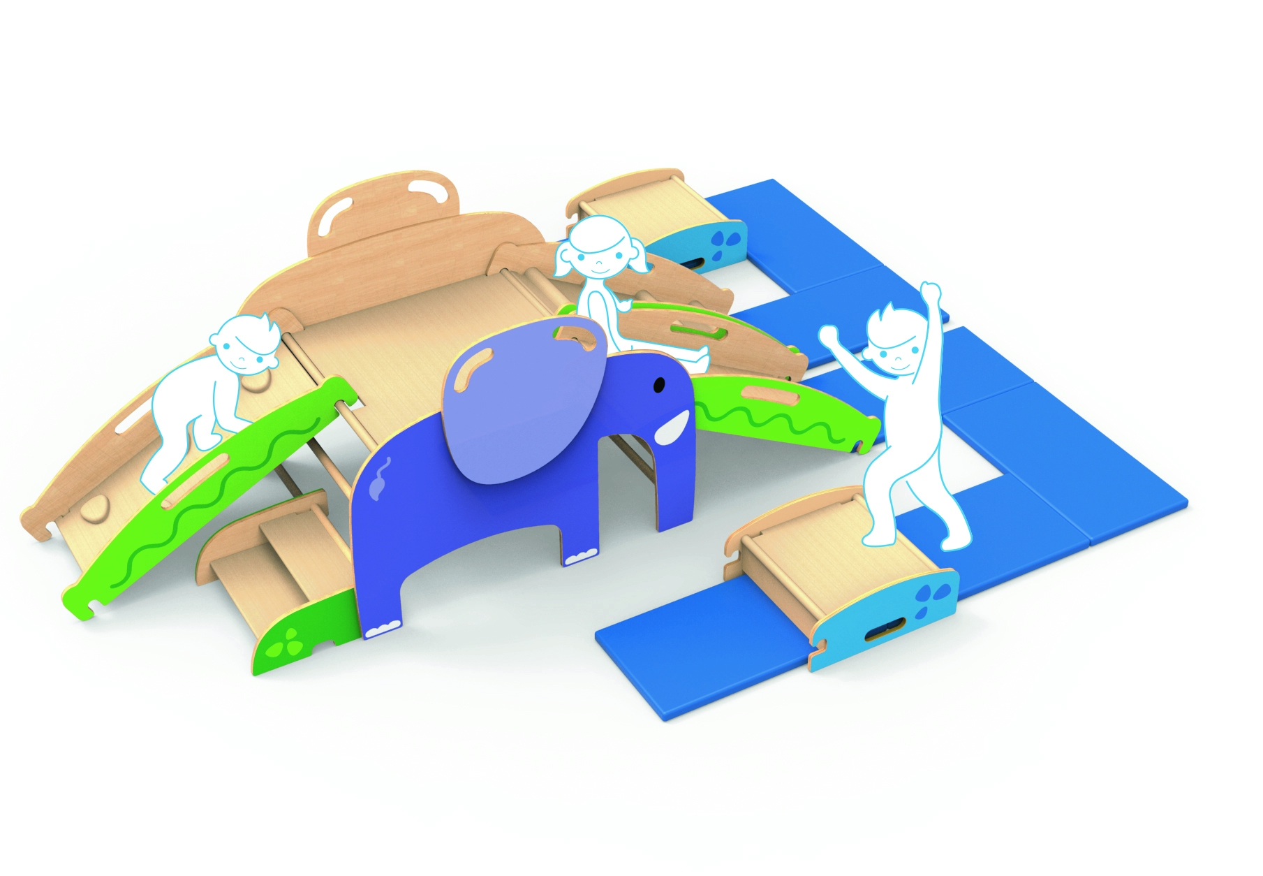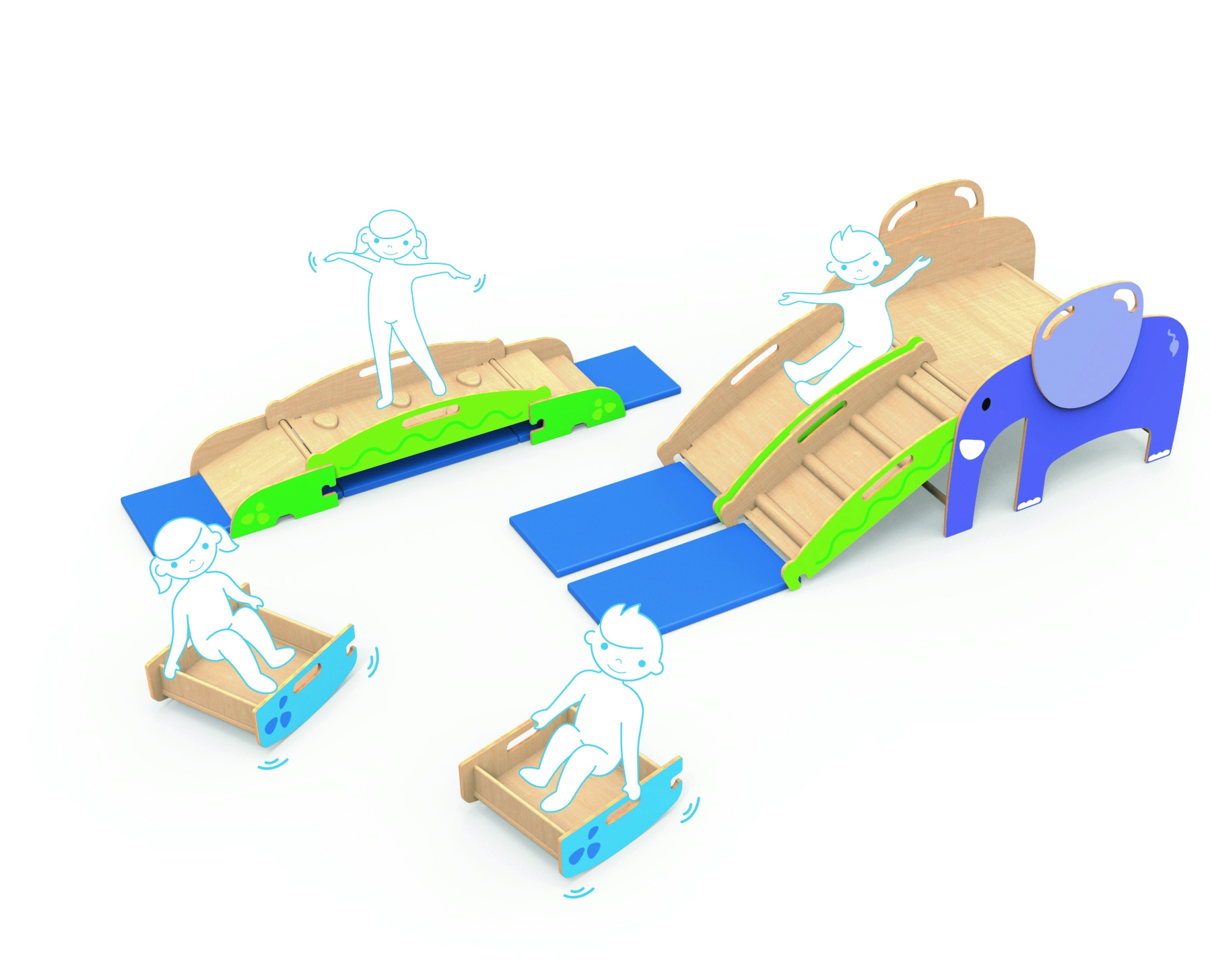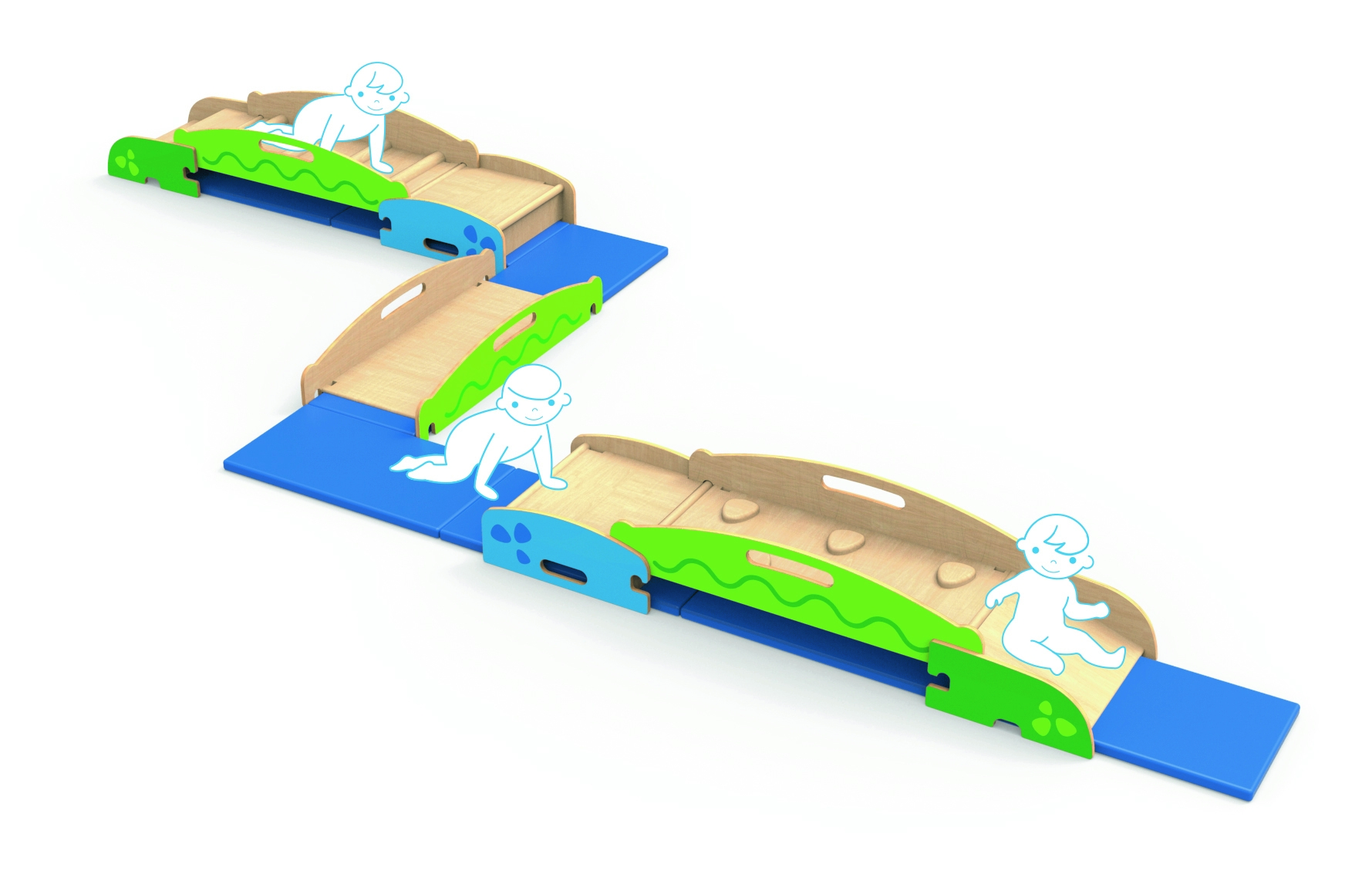 In dieser Bewegungslandschaft können kleine Abenteurer eine Menge Spaß haben! Rutschen, klettern und schaukeln sind nur einige der Möglichkeiten. Dabei kann das Szenario immer wieder anders und neu zusammengesetzt werden und sorgt so für grenzenlosen Spielspaß. Die Landschaft fördert die somatischen Fähigkeiten der Kinder umfassend und ermutigt durch seine Gestaltung zur Aktivität.