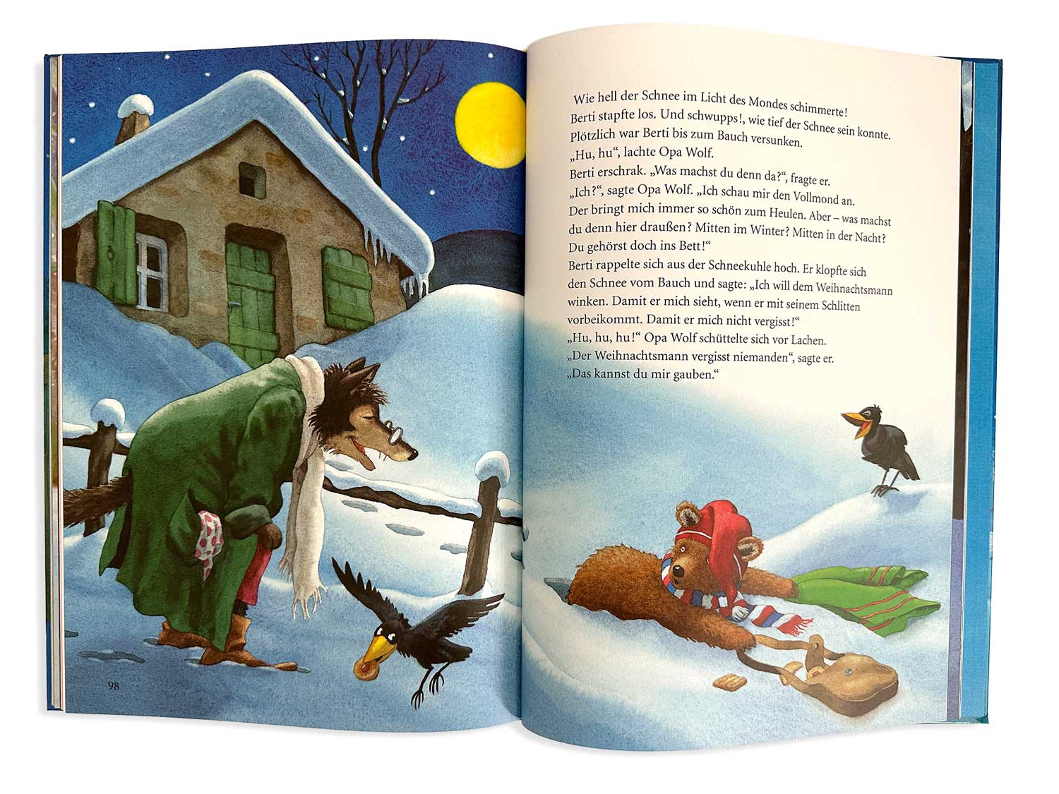 Diese zauberhafte Bilderbuchsammlung stimmt auf das schönste Fest des Jahres ein. Erzählt wird von der Reise des kleinen Esels zum Stall von Bethlehem, einem Weihnachtsmann, der fast verschlafen hätte, den Weihnachtsvorbereitungen bei Familie Waschbär und einem kleinen Bären, der im Wald auf den Weihnachtsmann wartet.
