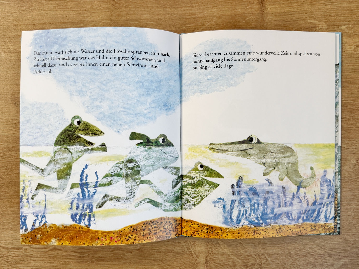 Auf einer Kieselsteininsel leben drei Frösche: Marilyn, August und einer, der immer irgendwo anders ist.