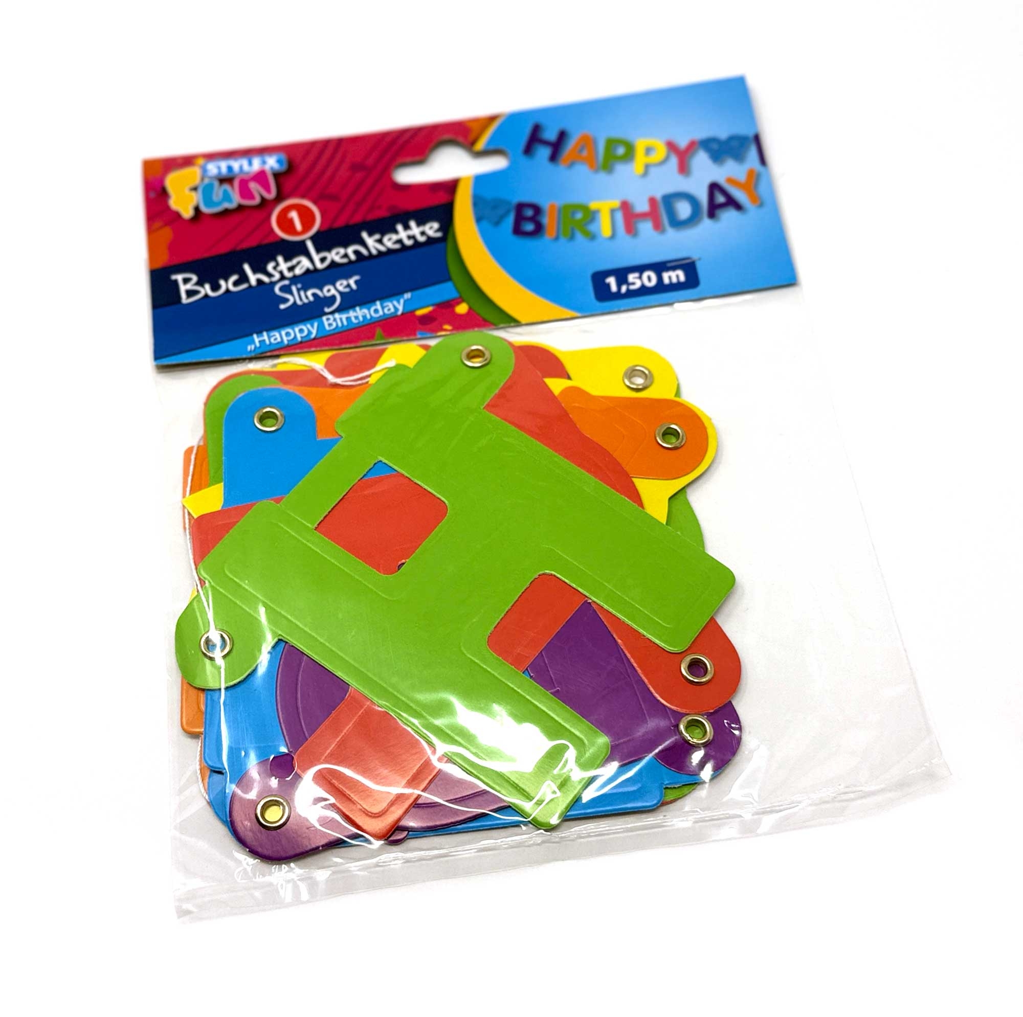Diese farbenfrohe Buchstabenkette mit dem Schriftzug „Happy Birthday" ist die perfekte Ergänzung für jede Geburtstagsfeier - ob Kindergeburtstag, Überraschungsparty oder runder Ehrentag.