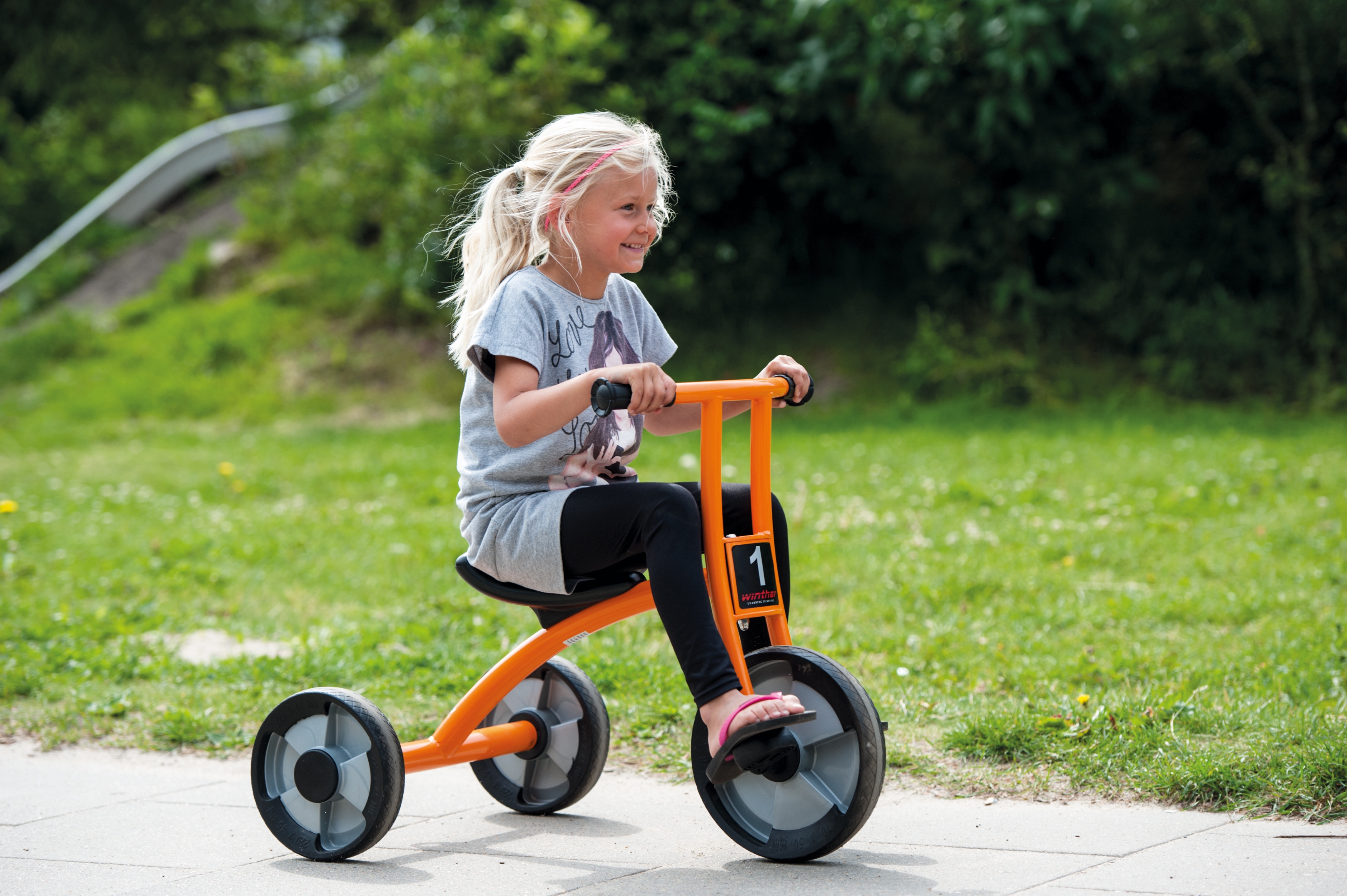 Ein Dreirad ist ein Muss auf jedem Spielplatz, es regt intensiv das Spiel der Kinder an und entwickelt ihre motorischen Fähigkeiten.