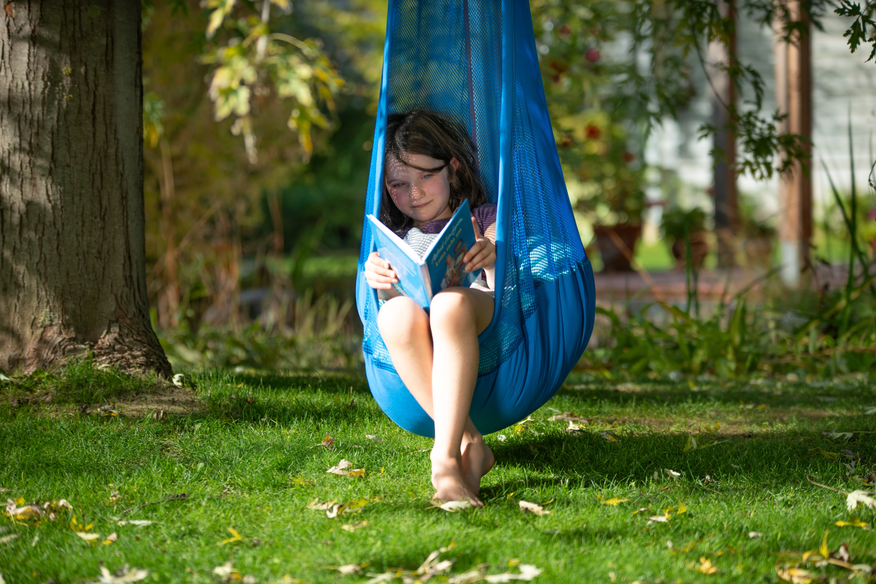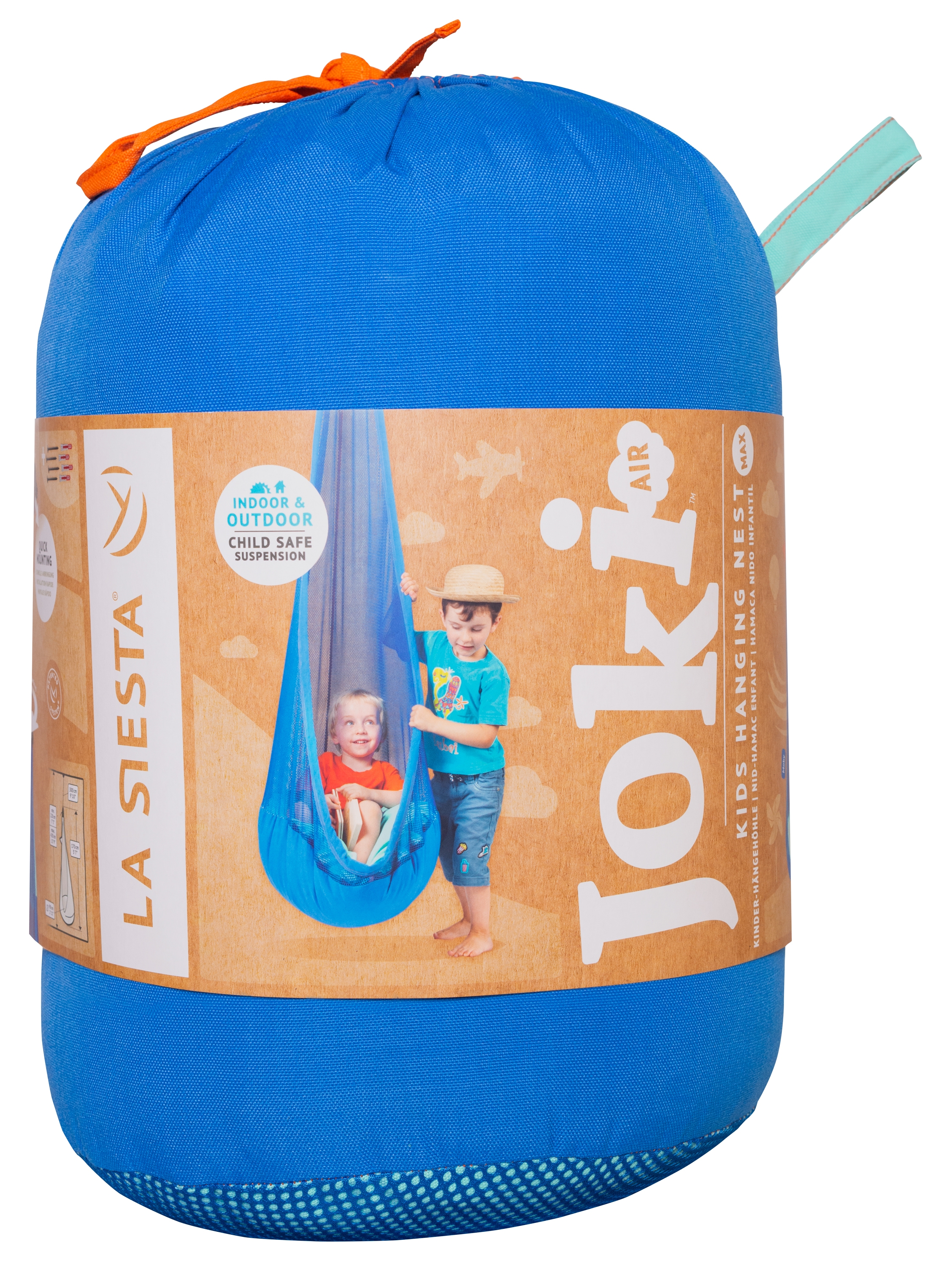 Ob im Kinderzimmer oder im Garten: Die extra große Kinder-Hängehöhle Joki Air besteht aus wetterbeständiger Outdoor-Faser und ist dank des Netzes angenehm luftig.