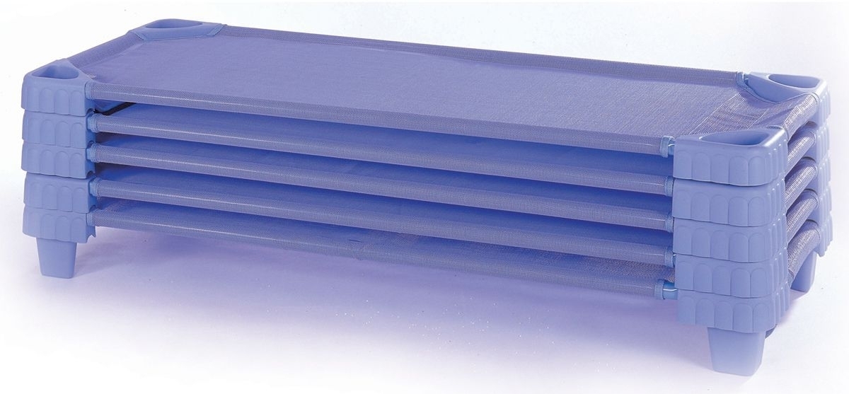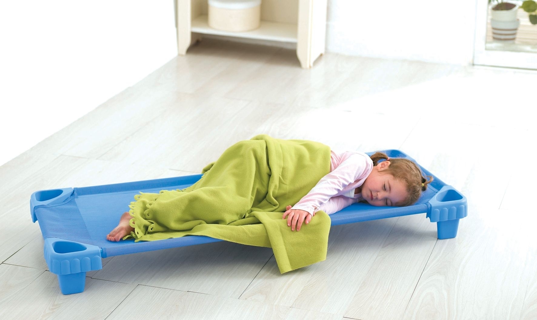 Die Liegen lassen sich kinderleicht zusammenbauen, haben einen kippsicheren Stahlrohrrahmen mit abgerundeten Ecken aus PP für mehr Sicherheit und brauchen wenig Stauraum, da sie stapelbar sind. Für die erste Liege sind zusätzlich Rollen erhältlich.