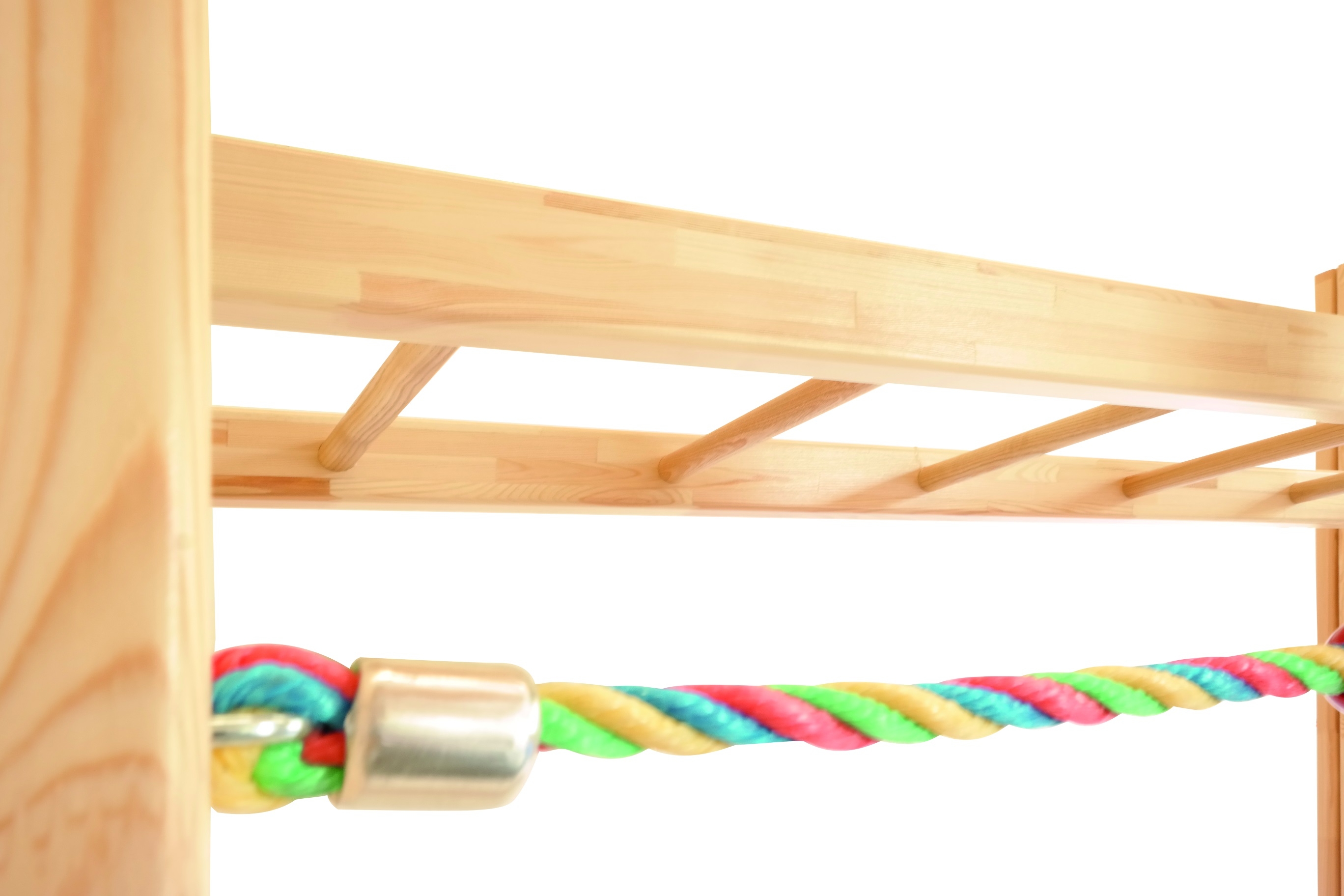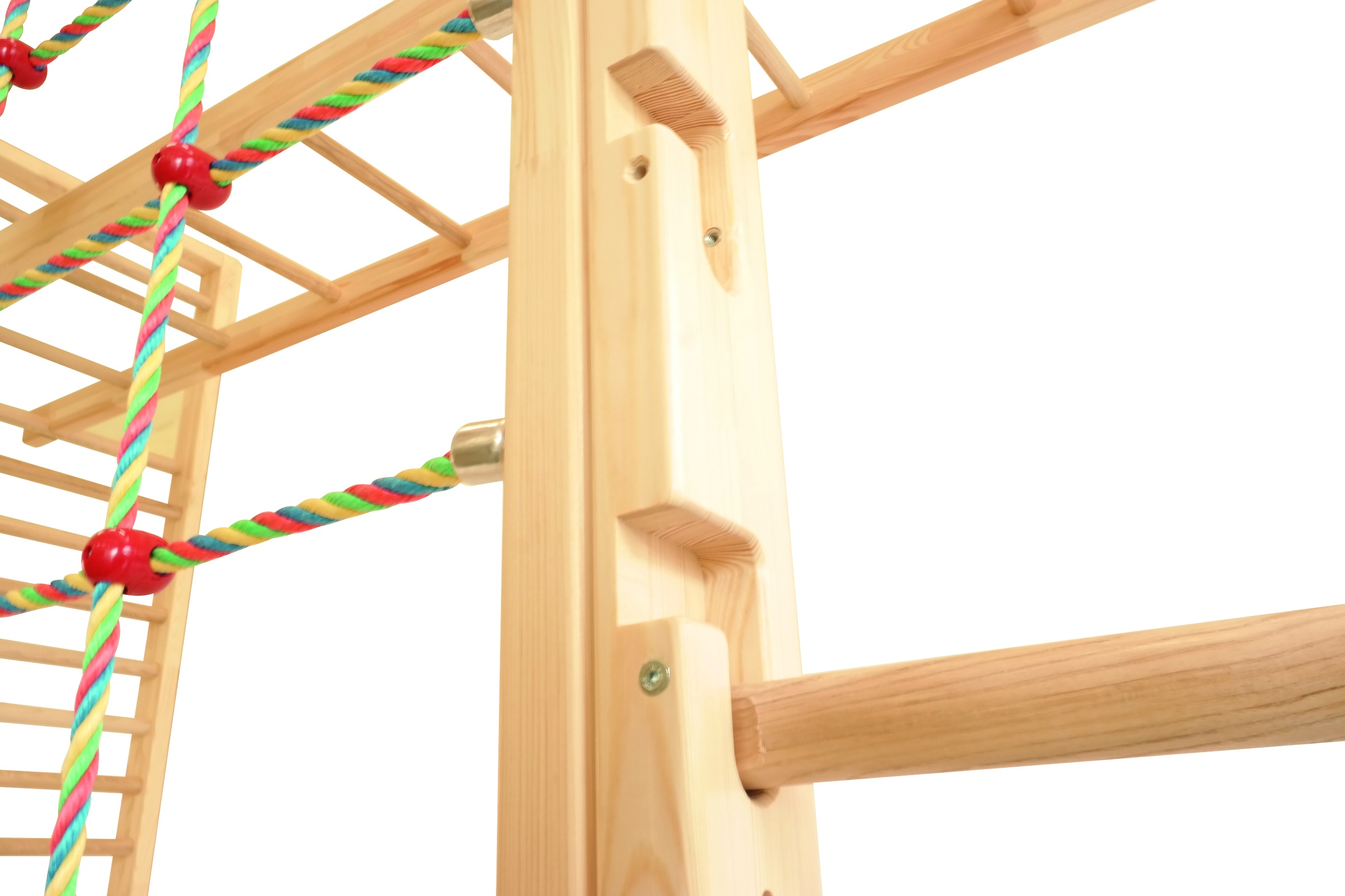 Die Rahmen sind aus Nadelholz und haben eine Breite von 100 cm, die Sprossen bestehen aus Hartholz. Die Gesamthöhe der Turnwände beträgt 225 cm.