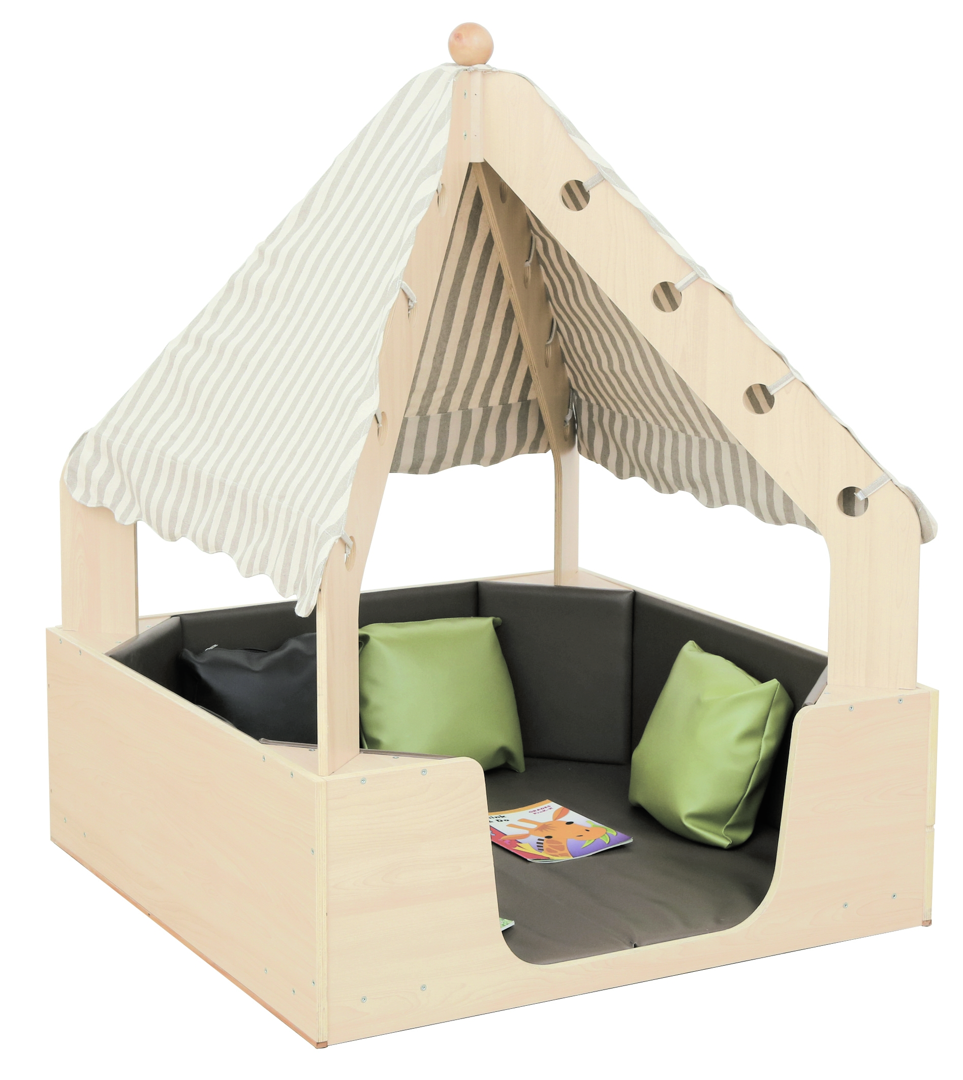Ob zum Relaxen, Lesen oder Spielen - diese Höhle bietet einen idealen Platz für viele Aktivitäten. Auch zum Rollenspiel geeignet. Abnehmbares Stoffdach mit Klettfixierung und lose, herausnehmbare Bodenmatte.
