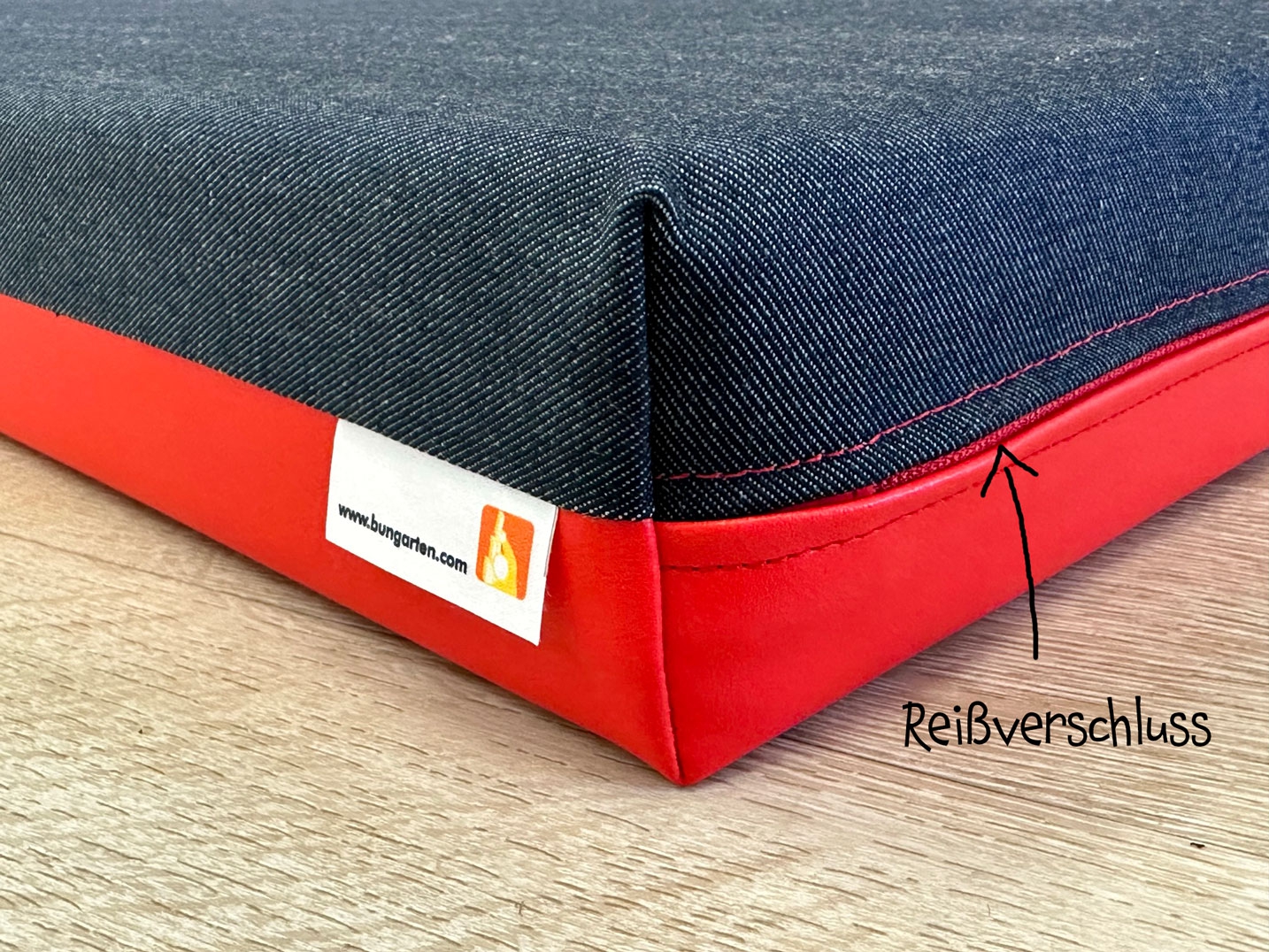 Das Liegepolster ist mit einem Reißverschluss an der kurzen Seite ausgestattet.