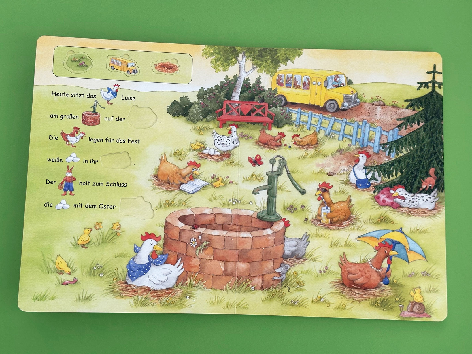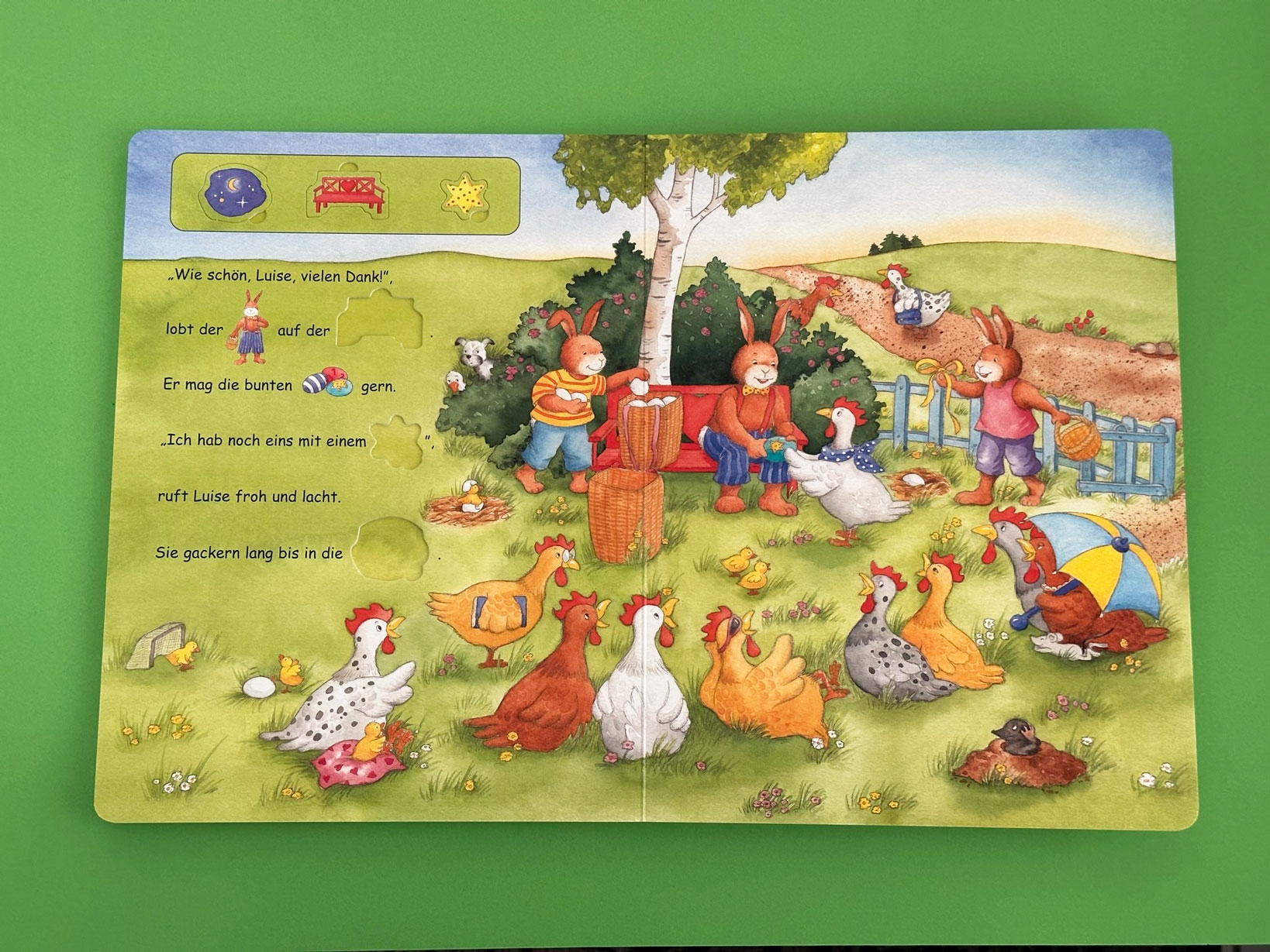 Alle Hühner legen weiße Eier. Nur Luise, die legt bunte! Wie soll der Osterhase ihre Eier da bemalen? Luises Hühnerfreundinnen wissen rat. Aber Abwaschenhilft nicht. Na, so was! Was der Osterhase wohl sagen wird?