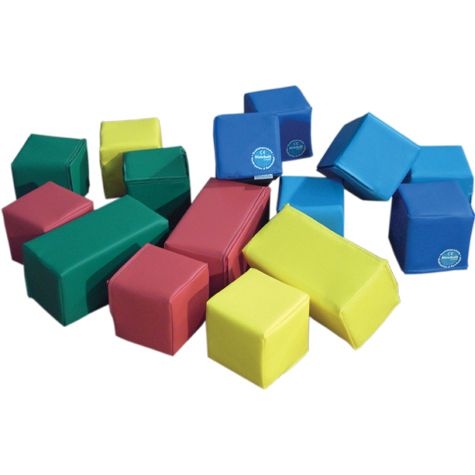Die idealen Bausteine für kleine Baumeister. Mit ihnen können Türme gebaut und auch wieder umgeworfen werden. Der 15-teilige Bausteinsatz mit Bezügen aus Kunstlederqualität ist farblich sortiert und besteht aus folgenden Teilen: 10 x Würfel bunt gemischt, 5 x Quader bunt gemischt.