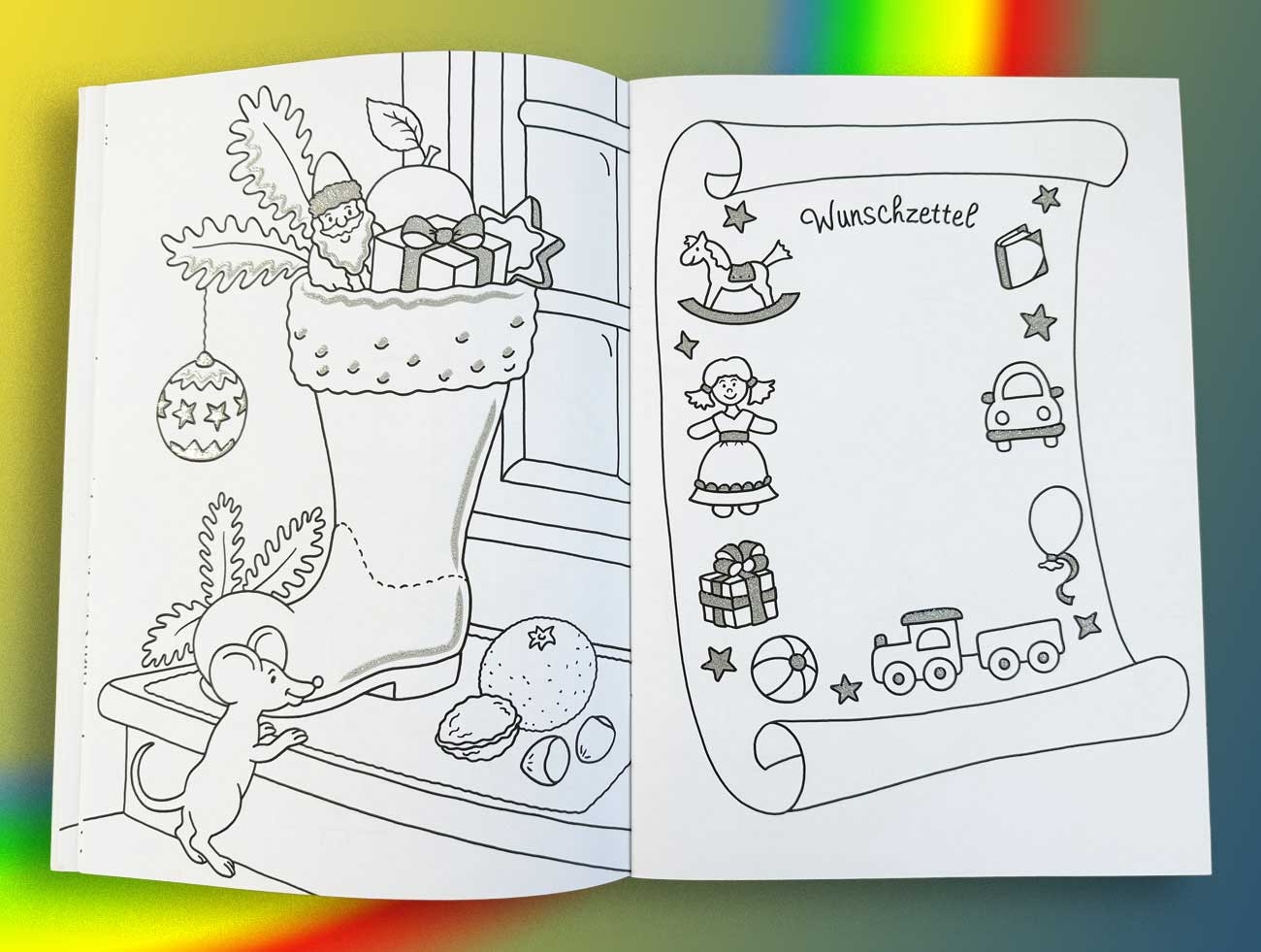 32-seitiges Malbuch, davon 16 mit silbernen Glitzern.