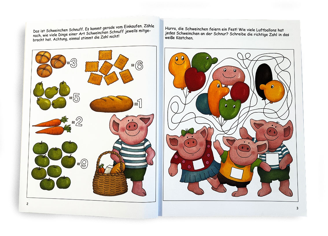 Extra viele Übungen zum Zählen, Rechnen und Schreiben.