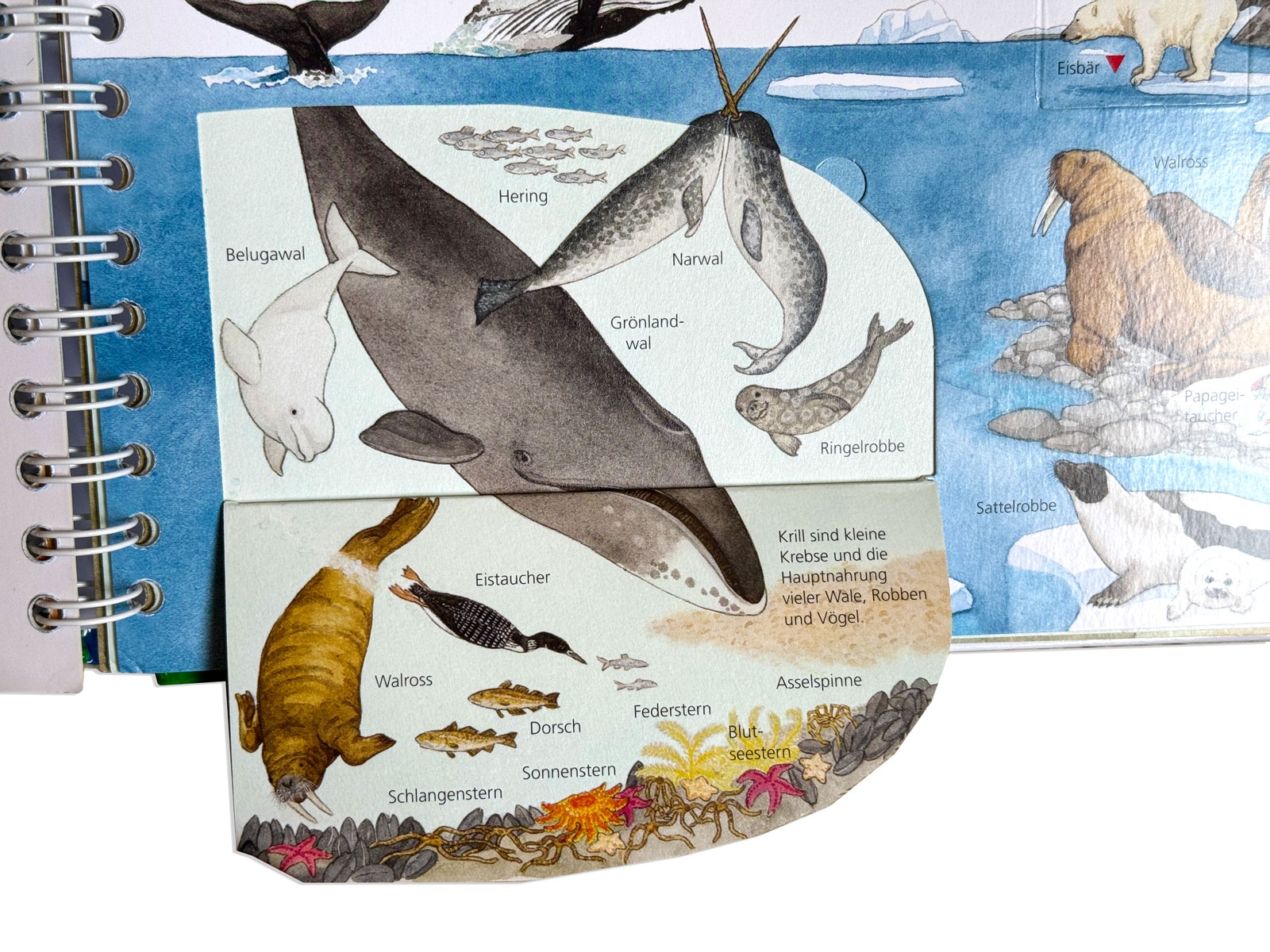 - Zahlreiche Klappen, die Einblicke ermöglichen, Bewegungen und Abläufe veranschaulichen