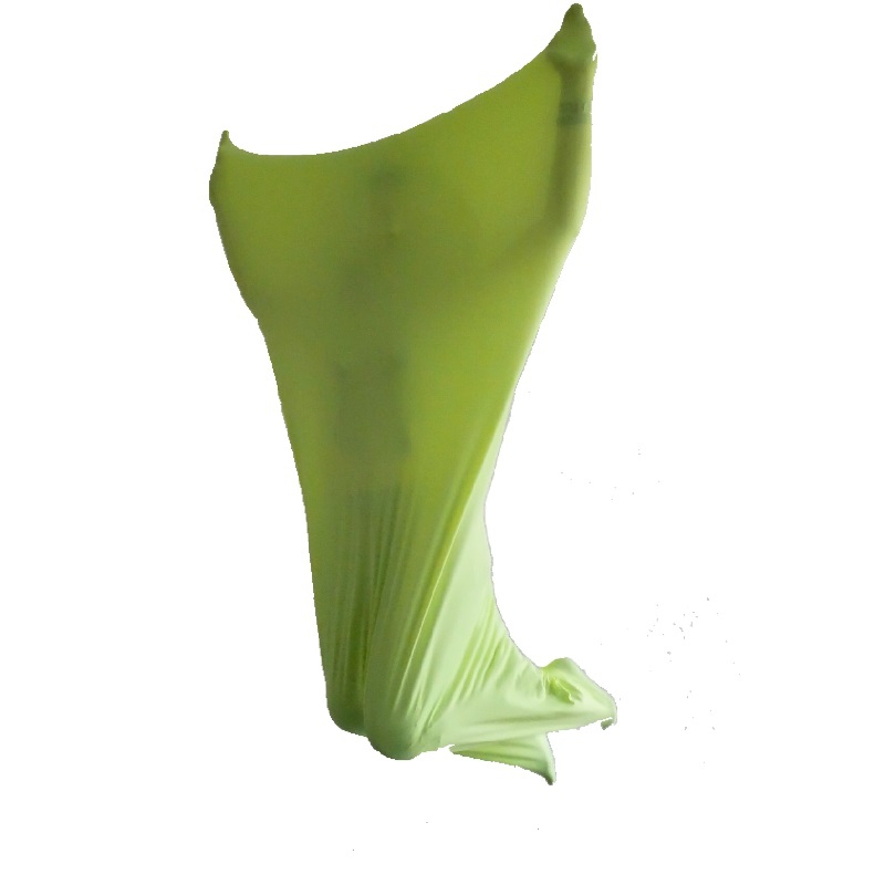 Das extrem belastbare Polyestergewebe ist in alle Richtungen dehnbar. Bei geschlossenem Klettverschluss ist der Darsteller von außen nicht zu sehen, kann aber von innen das Publikum genau beobachten. So kann man spielerisch den Raum neu erfahren.
