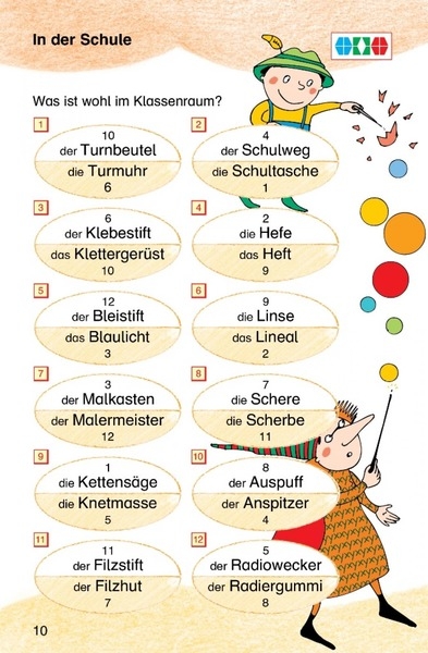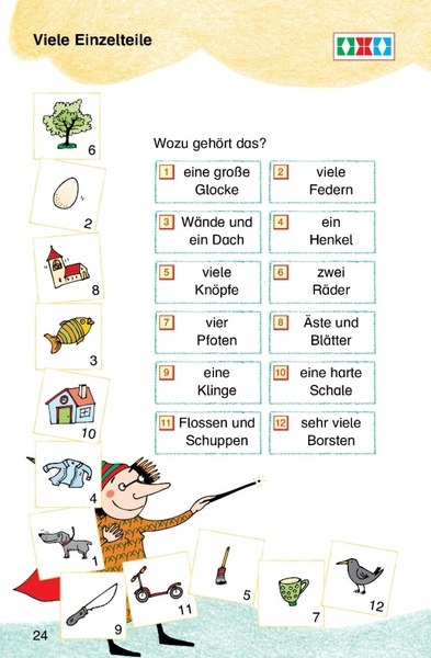 Leseaufgaben mit Reimwörtern, Lesetabellen, Ratespielen, Unsinnsätzen, Beantworten einfacher Fragen auch mit schwierigen Wörtern mit Konsonantenhäufungen und mehreren Silben