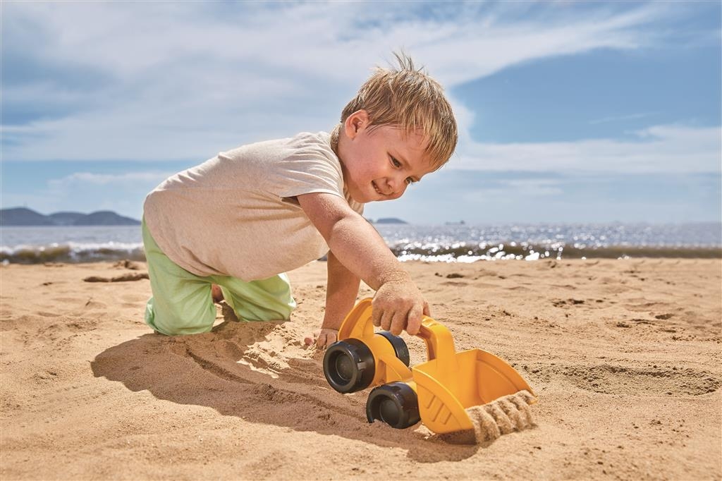 Spiel im Sand und grabe riesige Löcher mit unserem Monster-Bagger in knalliger Farbe! Ein sehr robustes Sandspielzeug und sehr beliebt bei kleinen Kindern.