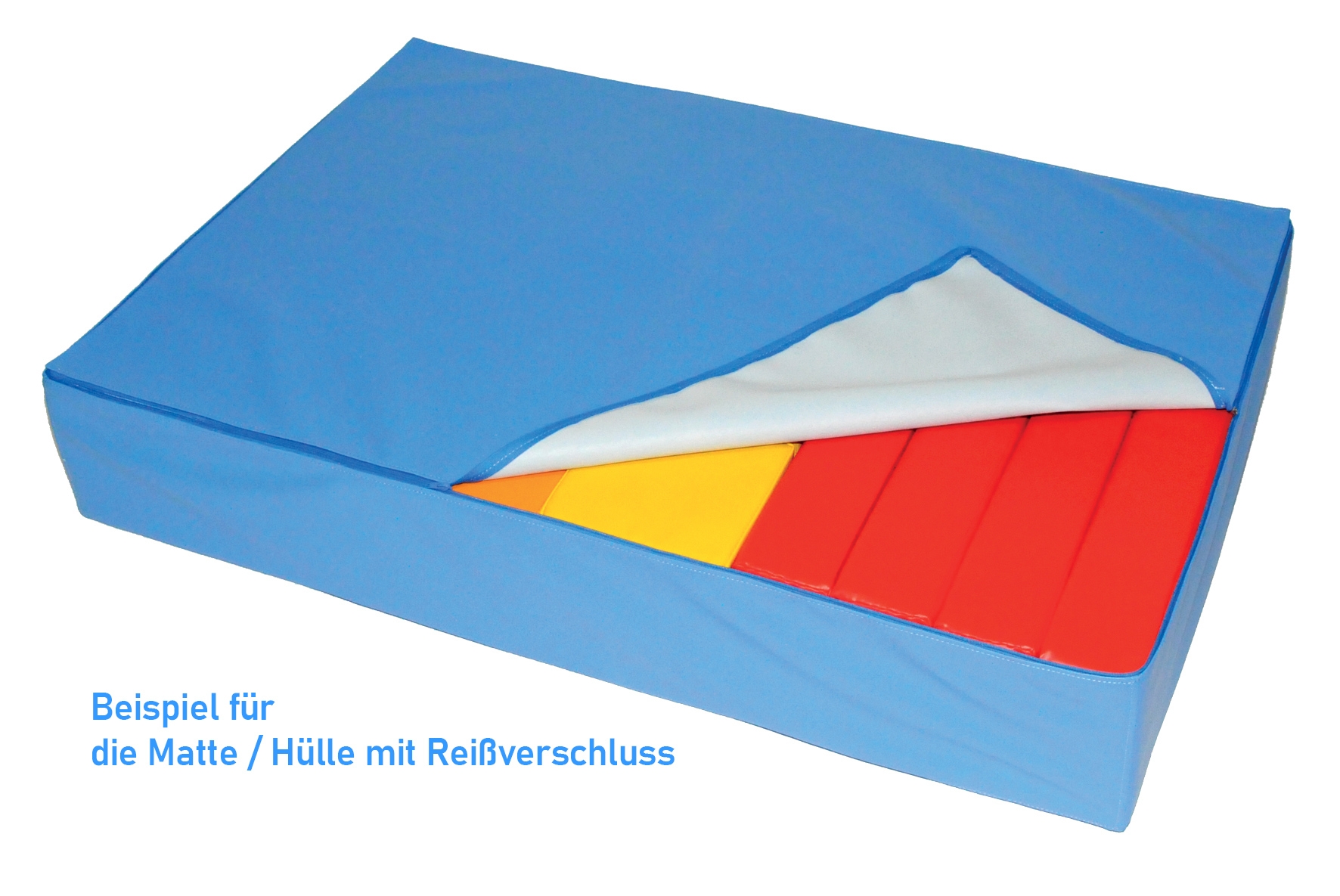 Die Matte mit Reißverschluss (blau): 120 x 80 x 10 cm (L x B x H) enthält: