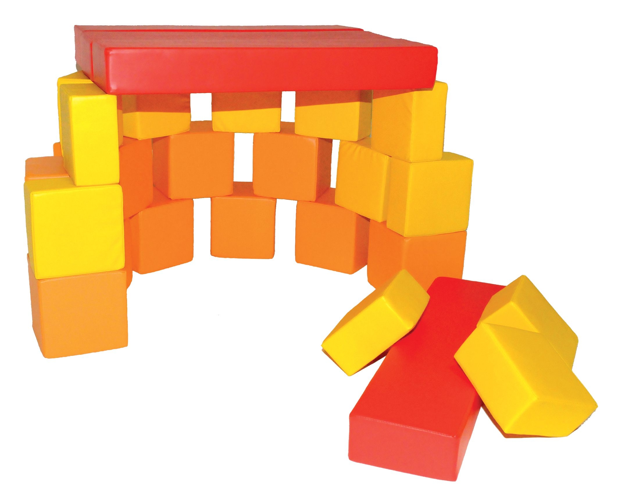12 Bausteine (gelb): 20 x 20 x 10 cm (L x B x H) und