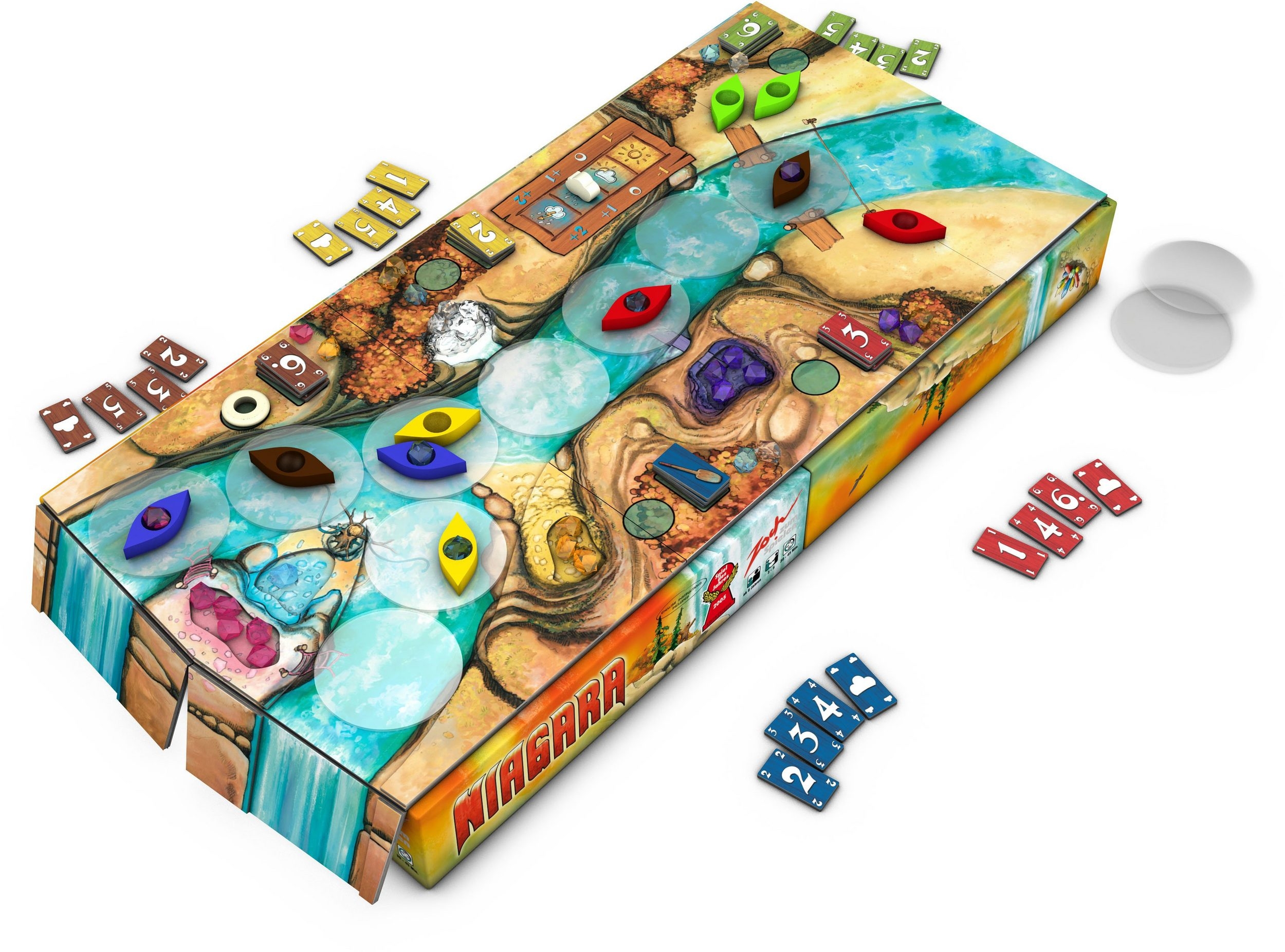 Das Familienspiel und Spiel des Jahres 2005 »Niagara« von Zoch handelt von einer mitreißenden Schatzsuche im Wettlauf gegen die Strömung. Das Flussbett bilden transparente Scheiben, auf denen die Kanus aller Spieler auf die Wasserfälle zutreiben. Mit Hilfe ihrer Paddelkarten bewegen die Spieler ihre Boote und beeinflussen zugleich die Flussgeschwindigkeit. Ziel ist es, Edelsteine an den Flussufern einzuladen und zurück an Land zu bringen. Aber auch an Bord sind die Juwelen längst nicht sicher, denn manche Bootscrew entpuppt sich hinterrücks als Diebesbande. Das wilde Wasserspektakel für unerschrockene Juwelenjäger, schafft Atmosphäre pur.