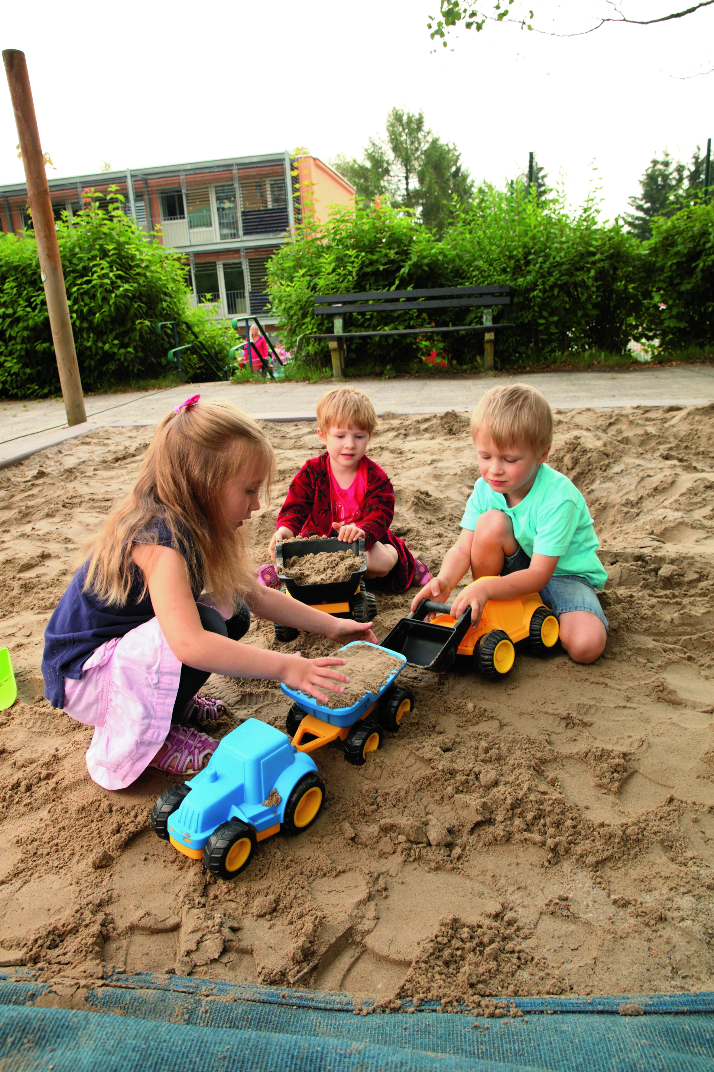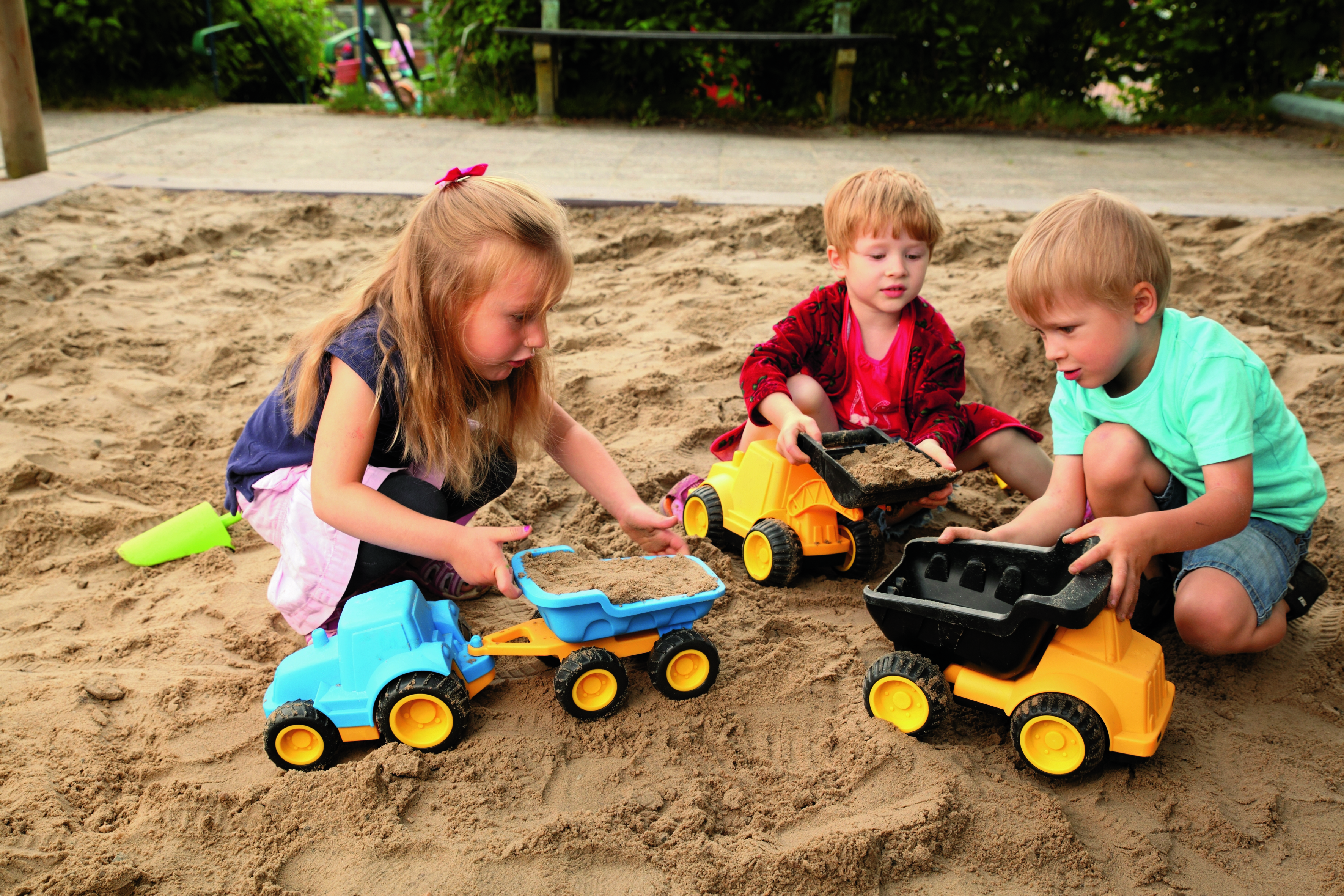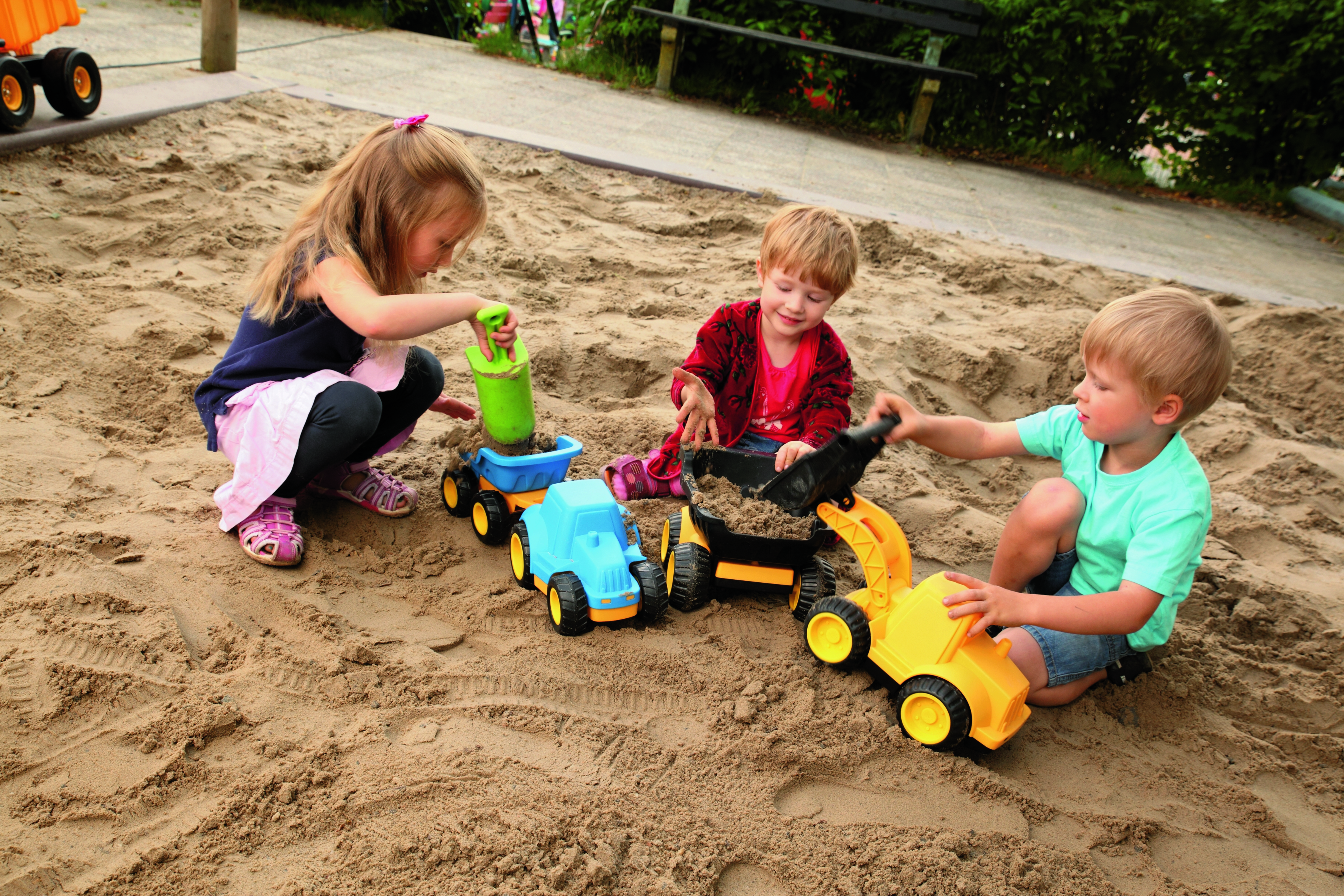 Schaufel- und Baustellenspaß mit dem Radlader. Mit seiner beweglichen Schaufel wird das Schaufeln von Sand kinderleicht. Der Radlader besteht aus UV-beständigem Kunststoff. Die Stahlachsen sorgen für extra Stabilität und die leisen EVA-Reifen hinterlassen tolle Spuren in Sand und Schnee.