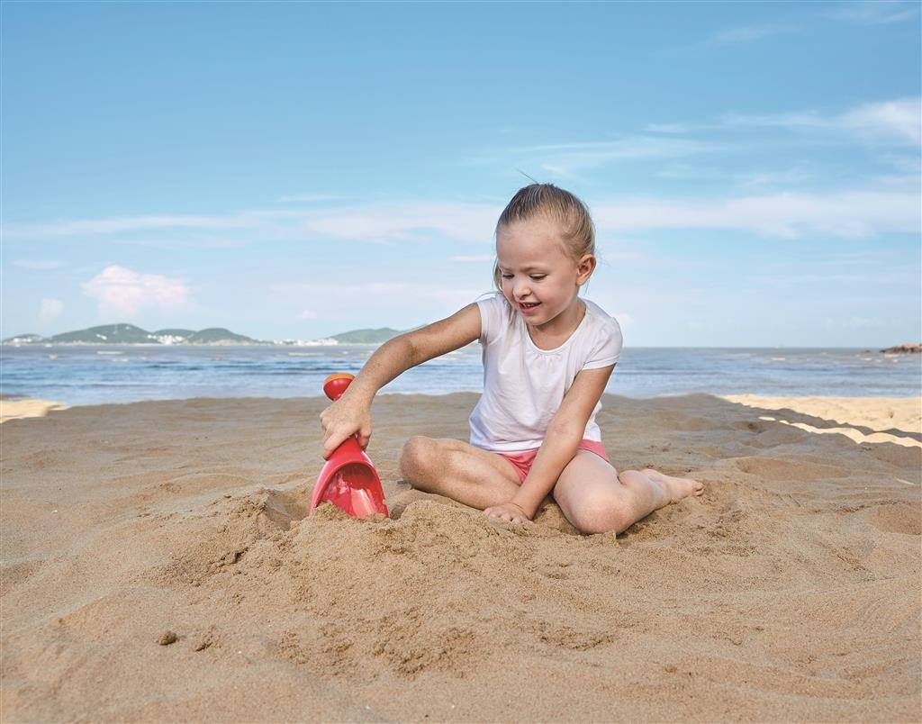 Eine Schaufel mit zwei Funktionen: schaufeln und gießen. Eins der beliebtesten Teile am Strand und im Sandkasten.
