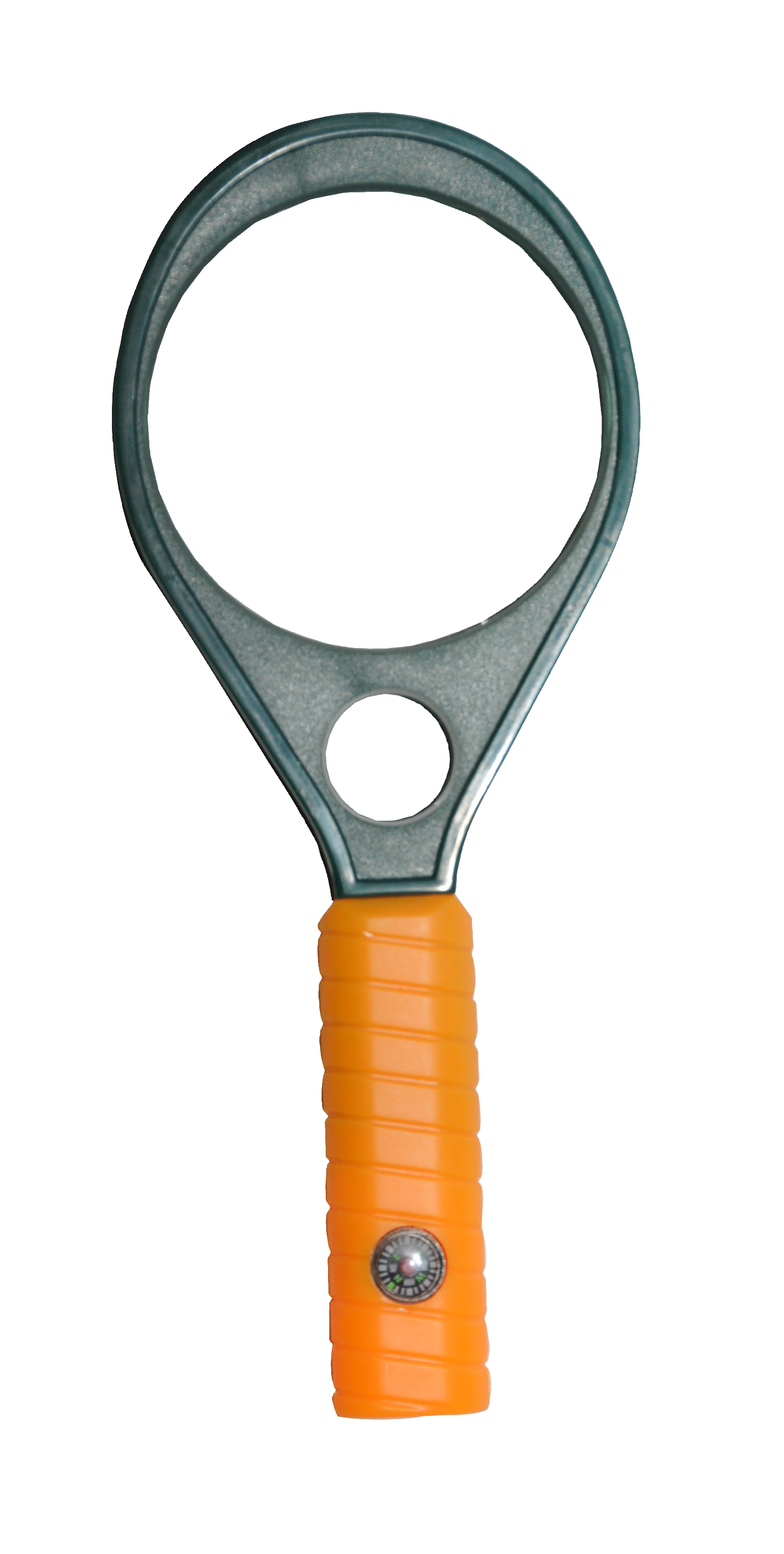 mit 2 Vergrößerungsgläsern und eingebautem Kompass.